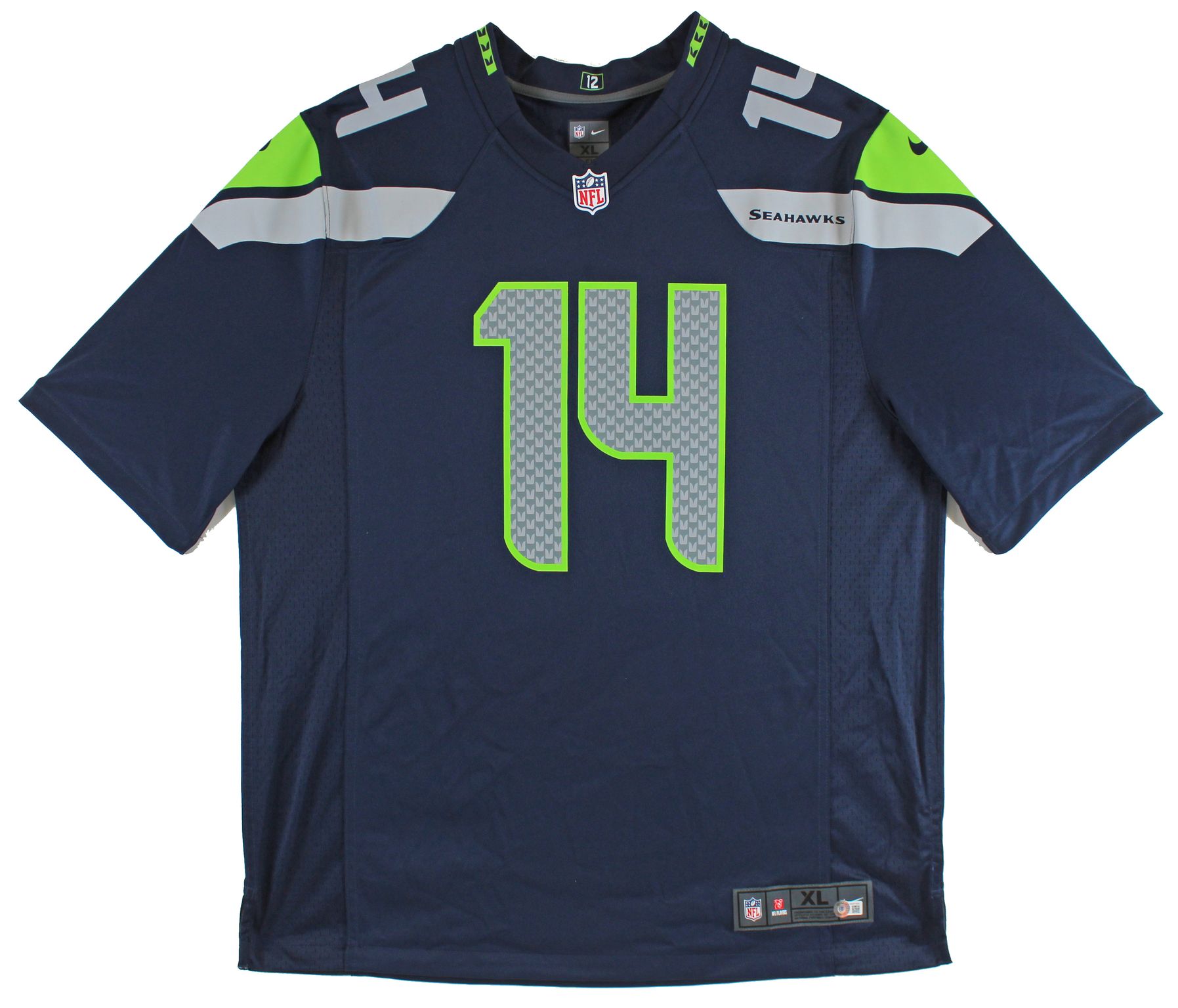Nike on-field style jersey. Everything is printed on, size XL. Hand-signed and inscribed by D.K. Metcalf (Seattle Seahawks).