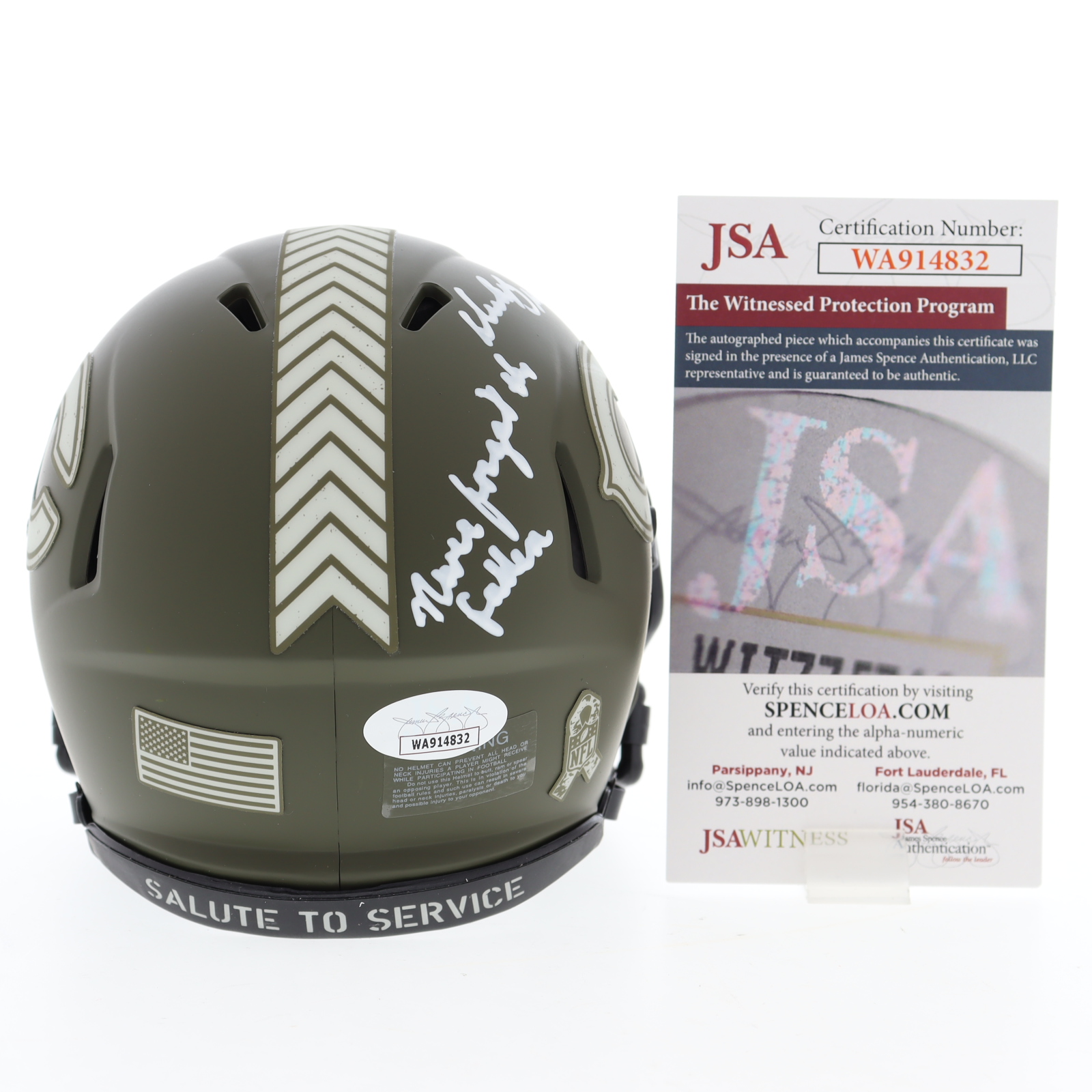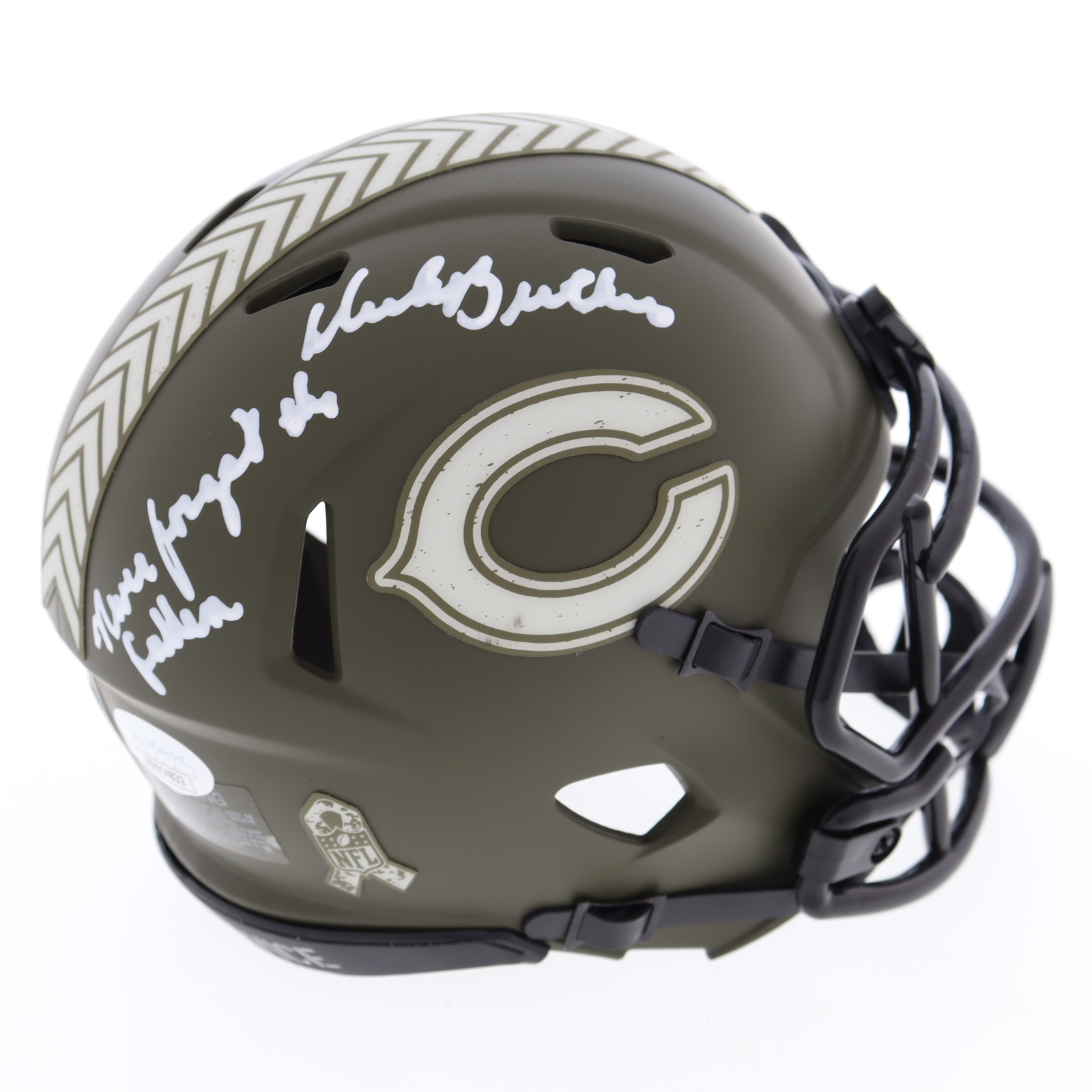 Dick Butkus Signed Bears Salute to Service Alternate Speed Mini Helmet Inscribed "Never Forget The Fallen" (JSA)