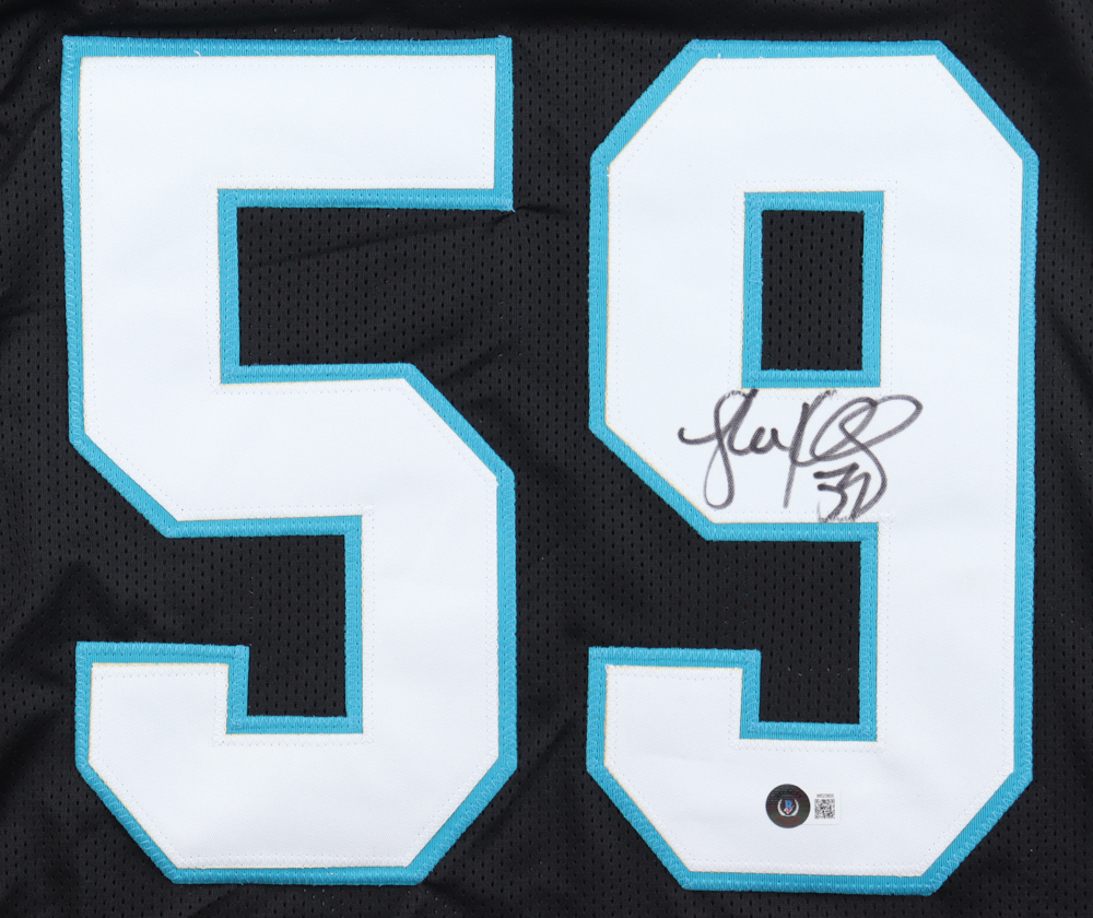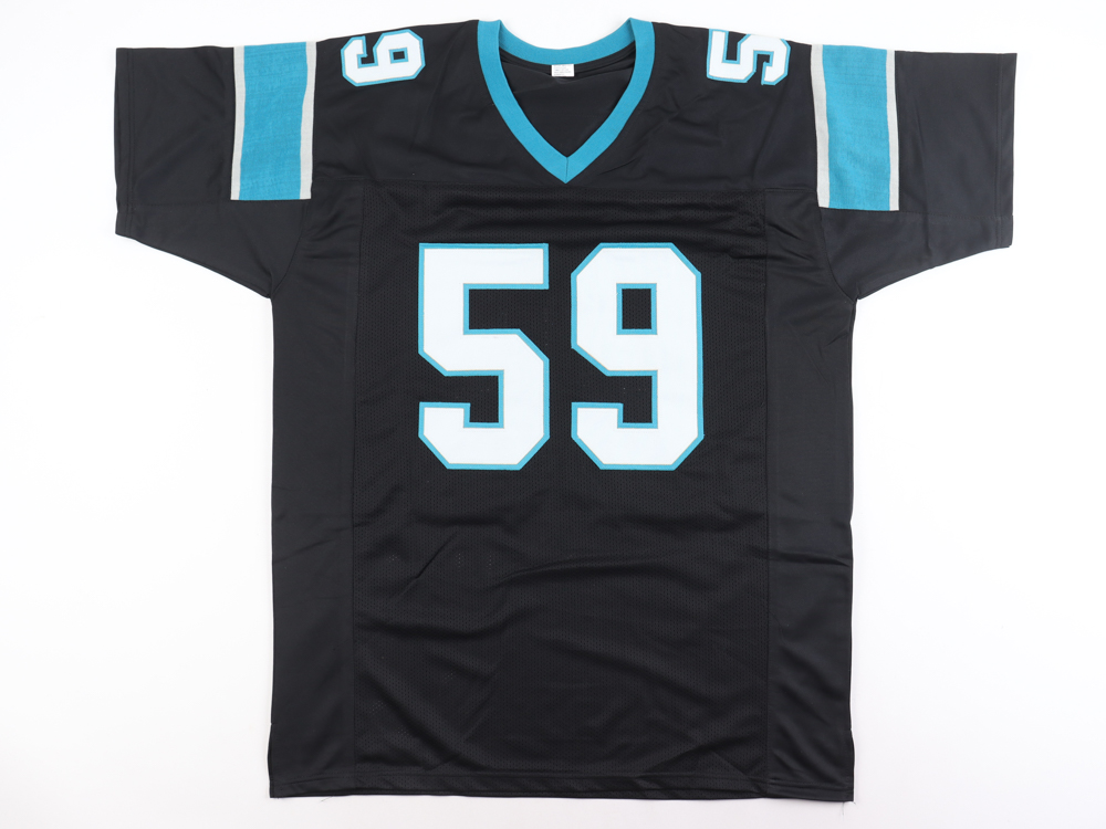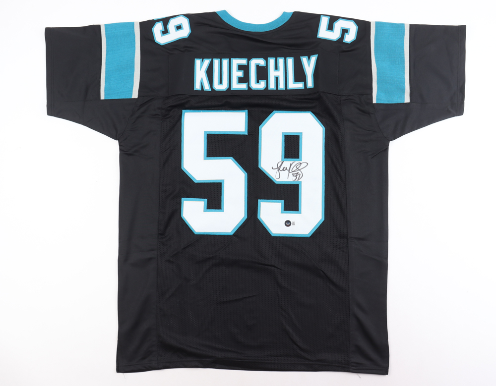 Custom jersey with everything sewn on, size XL. Hand-signed by Luke Kuechly.