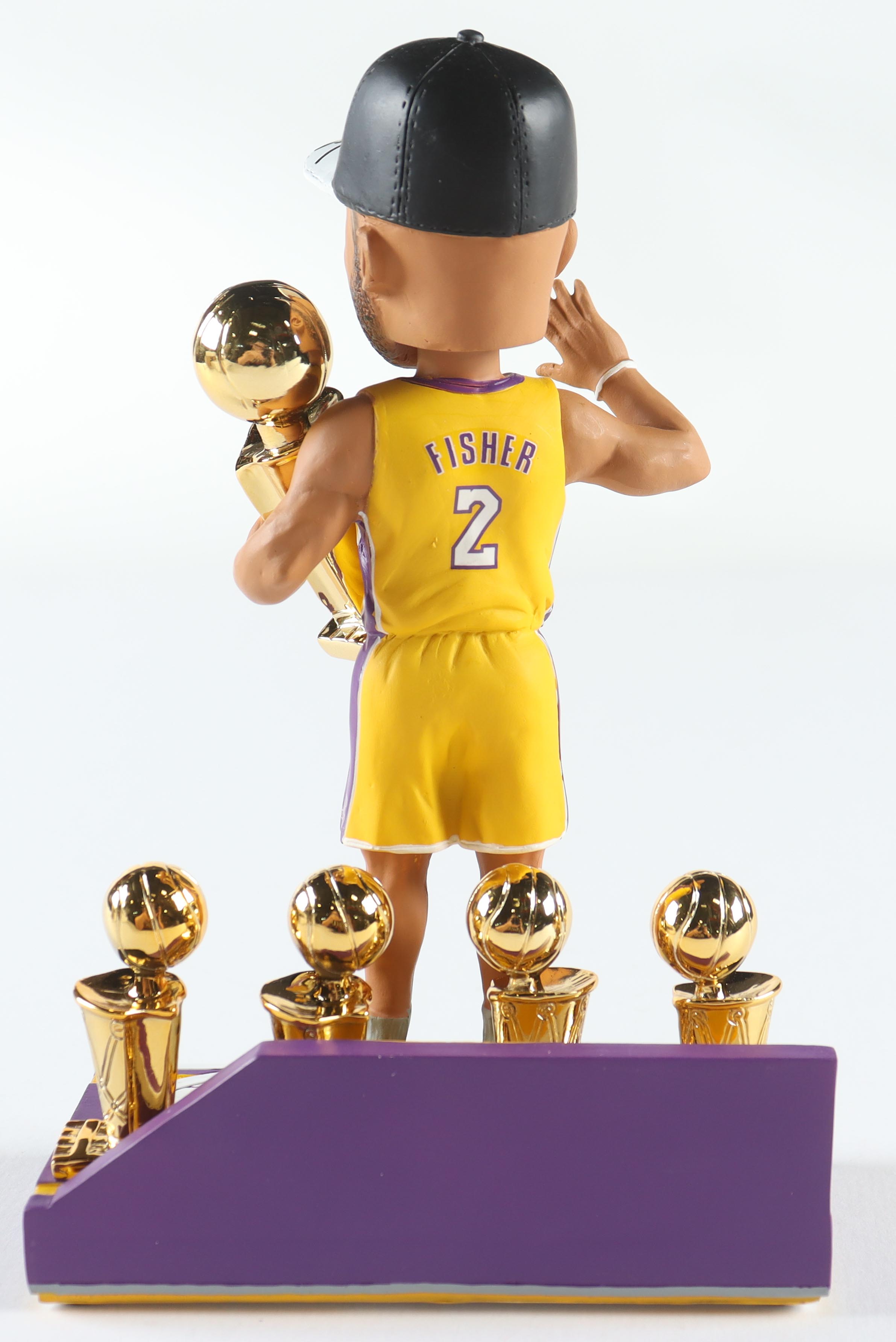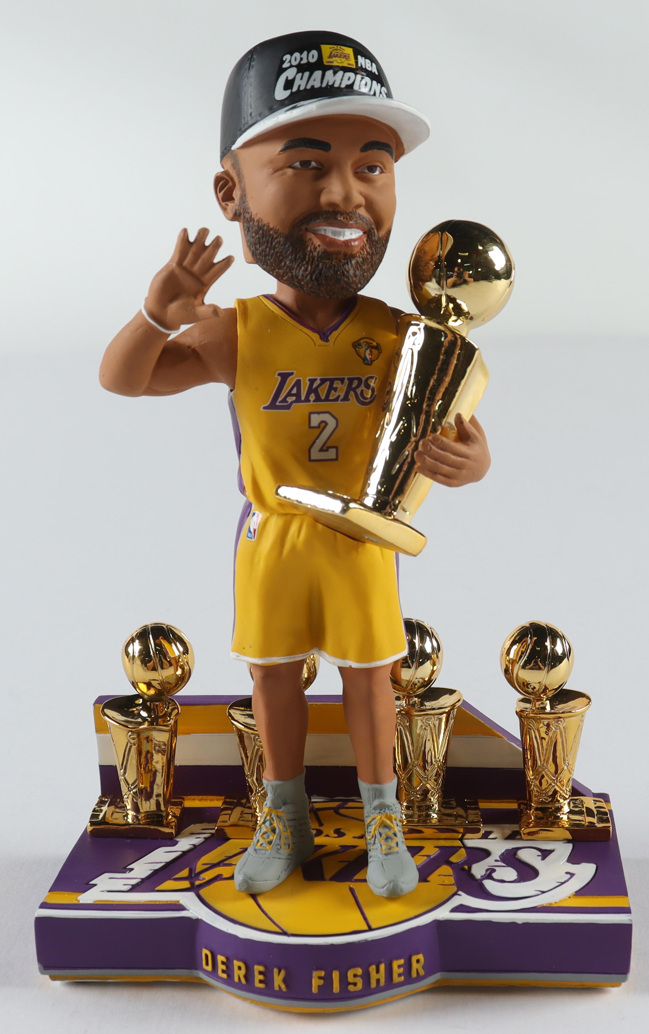 Bobblehead measures approximately 8" tall. Hand-signed on the hat by Derek Fisher (Los Angeles Lakers, HOF). Includes packaging.