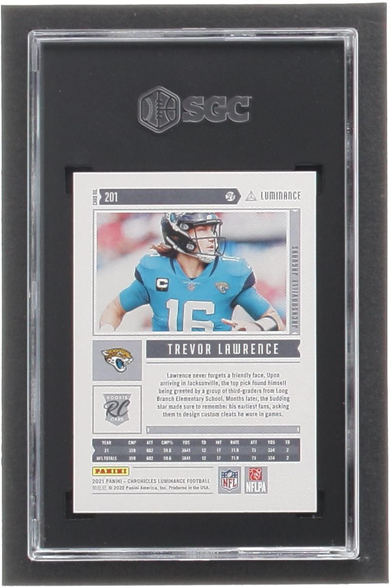 Trevor Lawrence 2021 Panini Chronicles Luminance Update Rookies #201 RC (SGC 10)