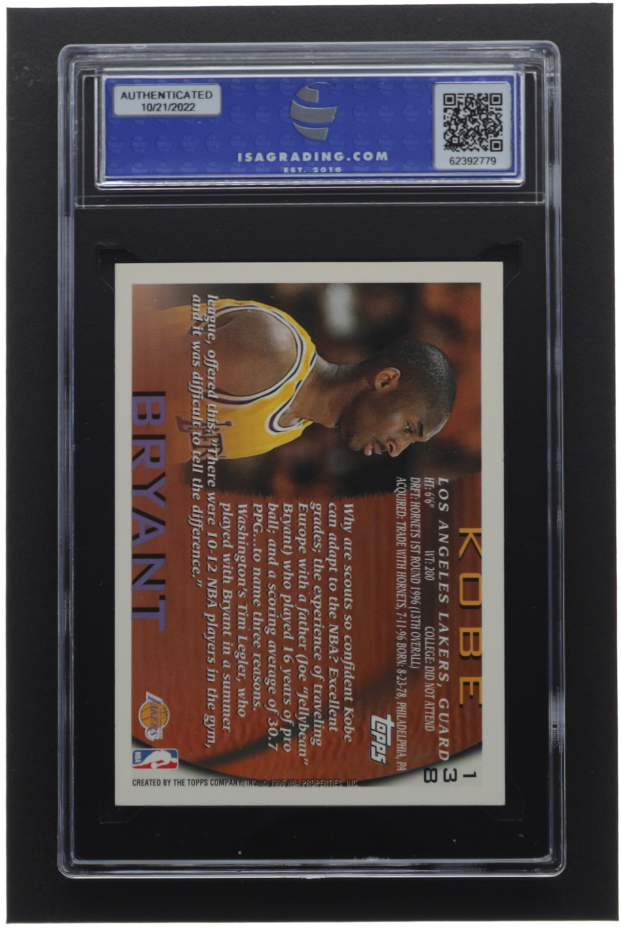 Kobe Bryant 1996-97 Topps #138 RC (ISA 8)