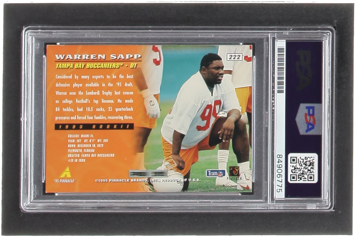 Warren Sapp Signed 1995 Pinnacle #222 RC (PSA | Auto Grade 10)
