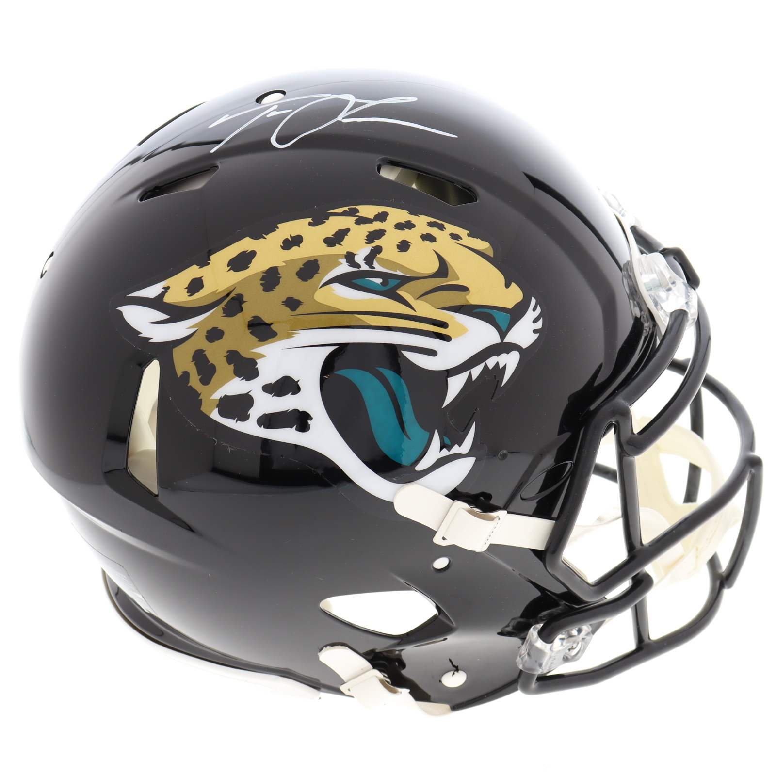 Riddell Jacksonville Jaguars full-size authentic on-field speed helmet. Hand-signed by Trevor Lawrence.