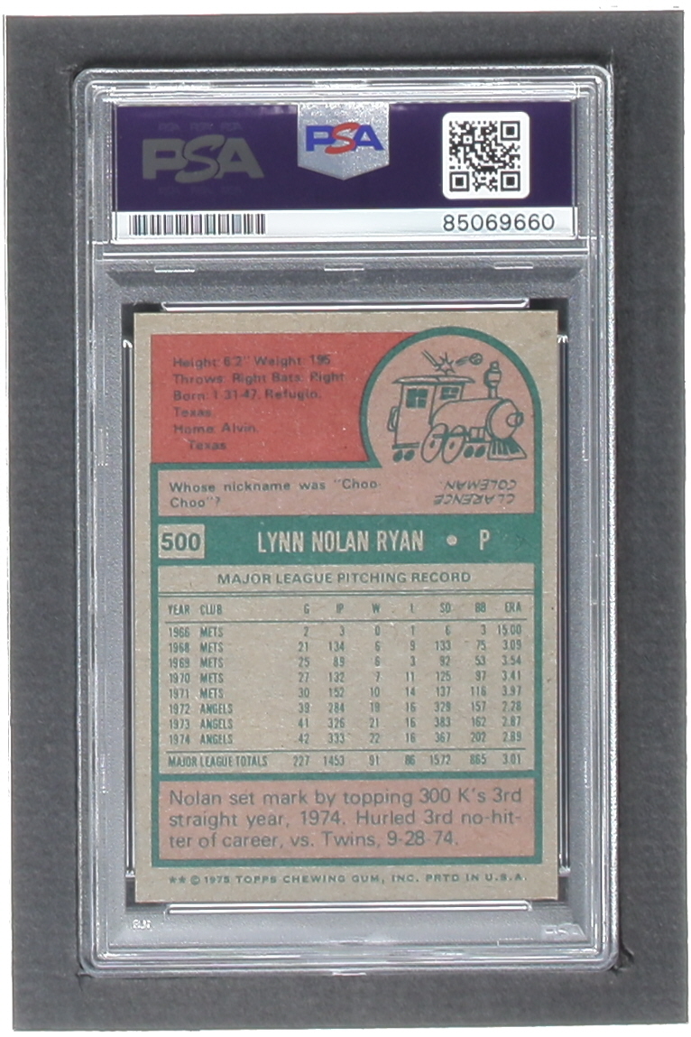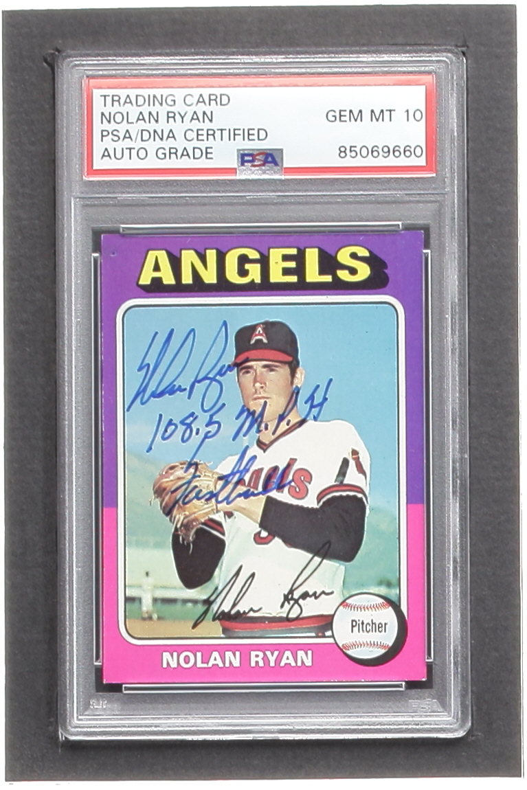 Nolan Ryan Signed 1975 Topps #500 Inscribed "108.5 M.P.H. Fastball" (PSA | Auto Grade 10)
