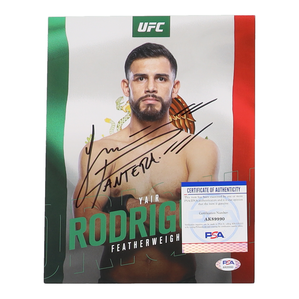 Photo measures 8" x 10" in size. Hand-signed and inscribed by Yair Rodriguez..