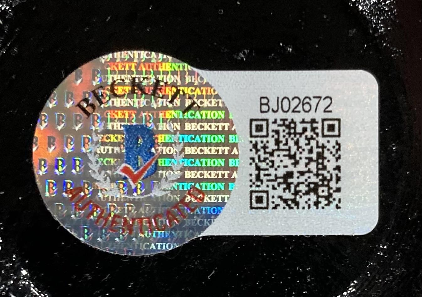 The autograph includes an official Beckett Authentication Services serially-numbered hologram and matching COA for authenticity purposes. The signing of this item was witnessed by Beckett.