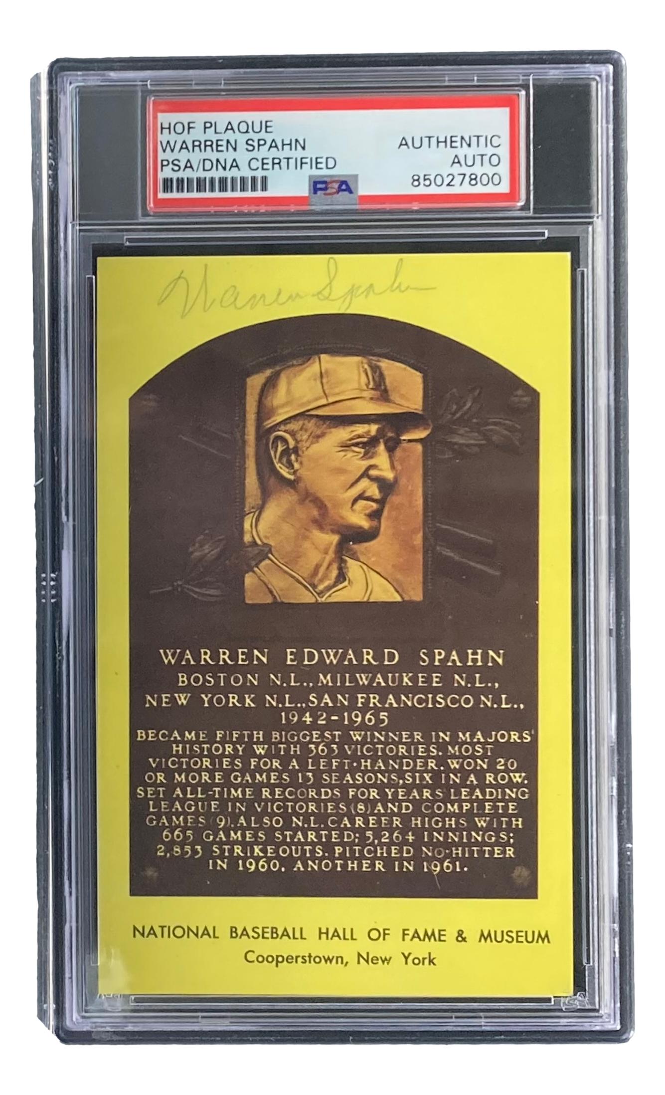 Warren Spahn Signed Hall of Fame Plaque Postcard (PSA)