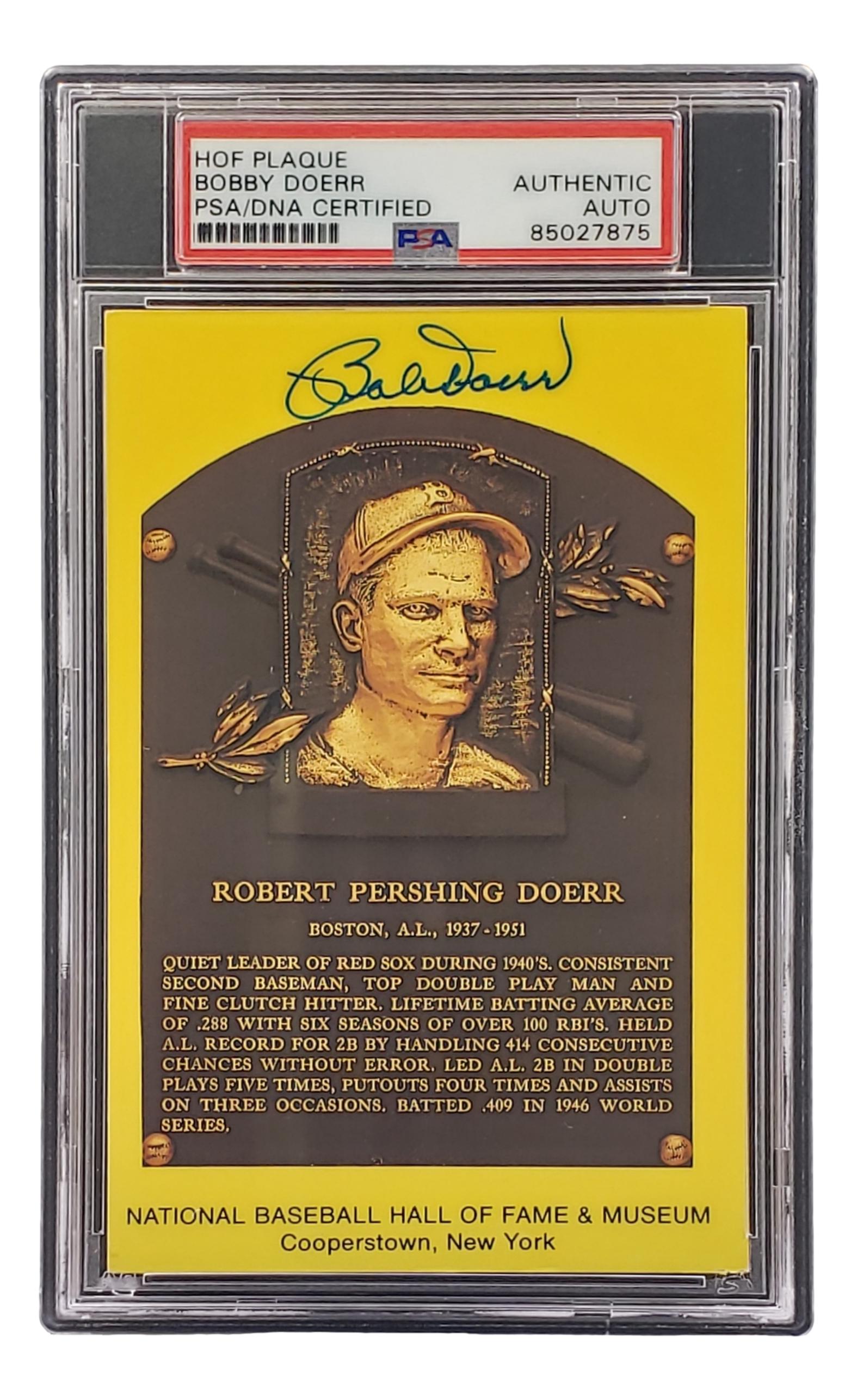 Bobby Doerr Signed Hall of Fame Plaque Postcard (PSA)