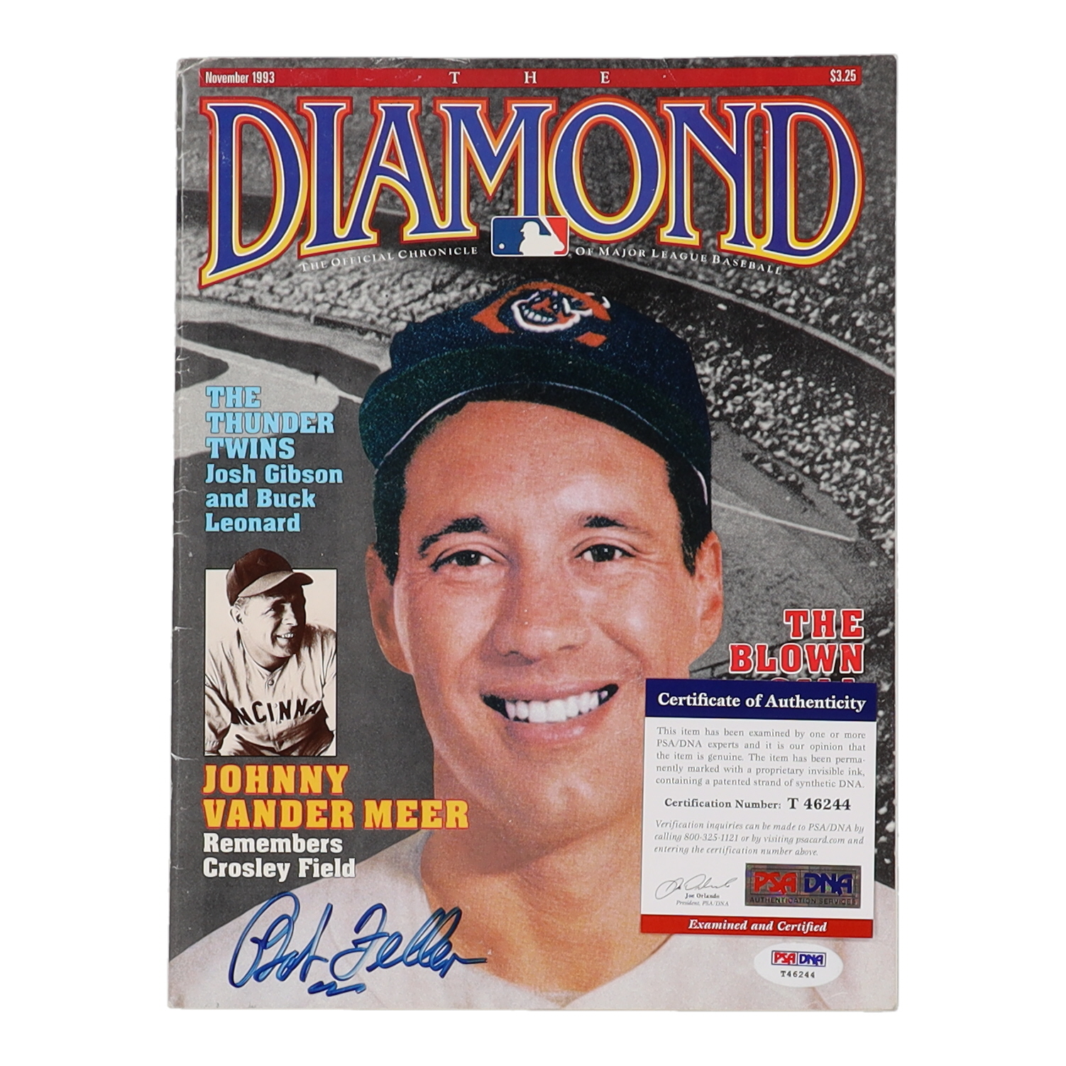 Bob Feller Signed Indians 1993 The Diamond Magazine (PSA)