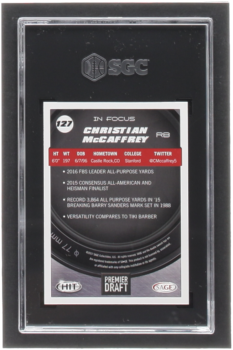 Christian McCaffrey 2017 SAGE HIT Premier Draft #127 IF RC (SGC 10)