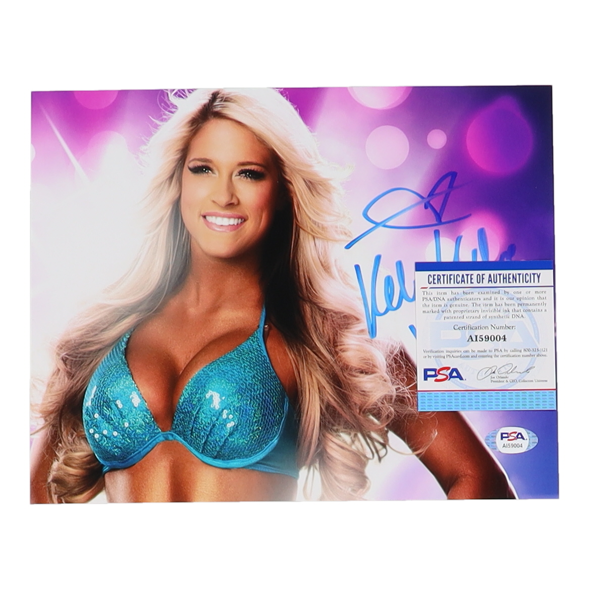 Photo measures 8" x 10" in size. Hand-signed by Kelly Kelly.