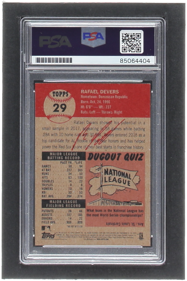 Rafael Devers Signed 2018 Topps Living #29 RC (PSA)