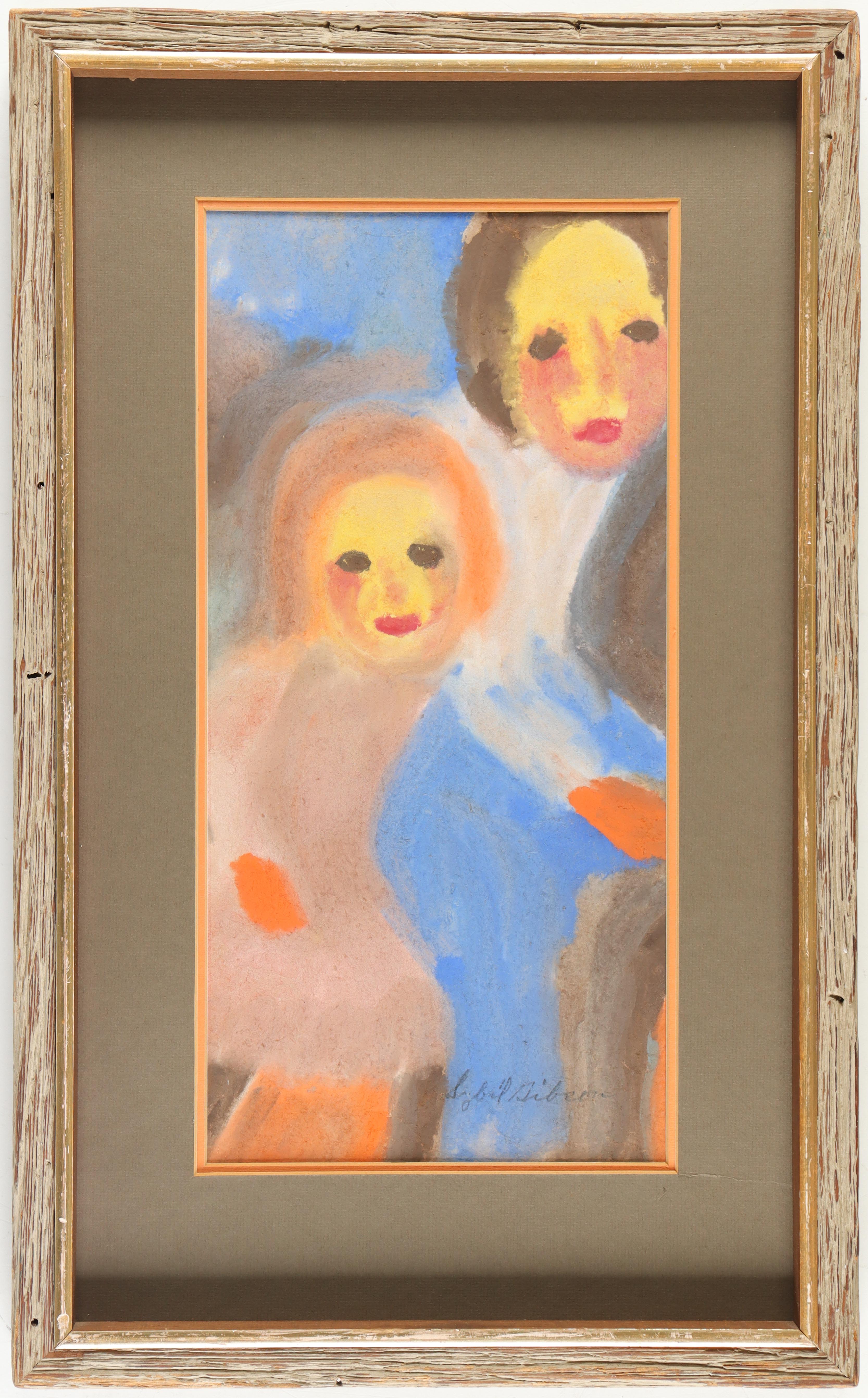 Custom framed display measures 15" x 24" in size and features a pastel art print from Sybil Gibson (D.1995). Original Gouache paintings and the signatures.