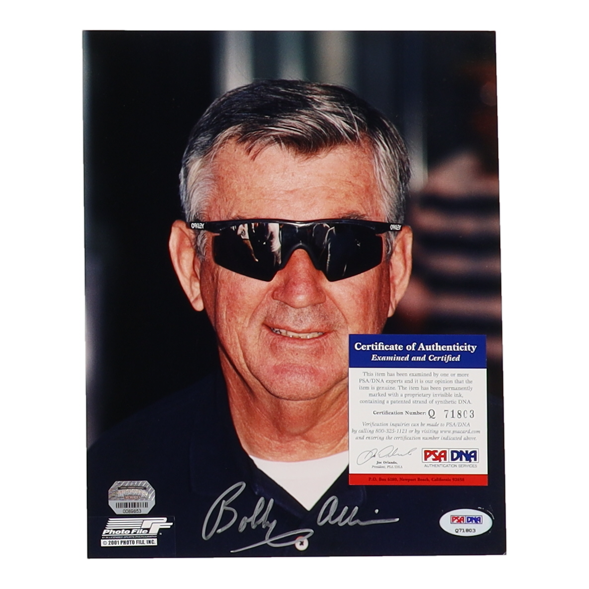 Photo measures approximately 8" x 10" in size and has been hand-signed by Bobby Allison (HOF).