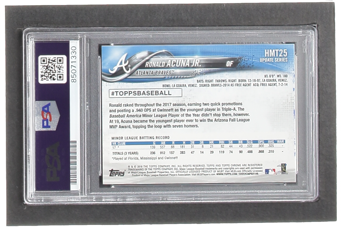 Ronald Acuna Jr. Signed 2018 Topps Chrome Update #HMT25 RC (PSA | Autograph Graded PSA 9)