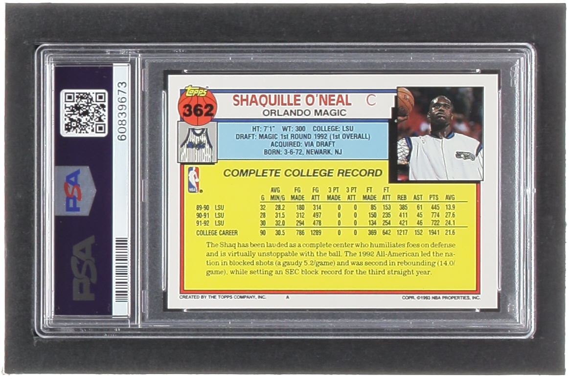 Shaquille O'Neal 1992-93 Topps #362 RC (PSA 8)