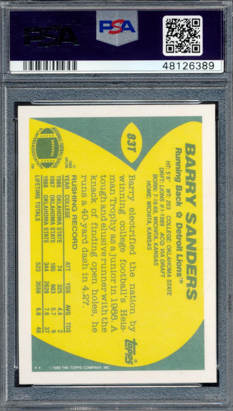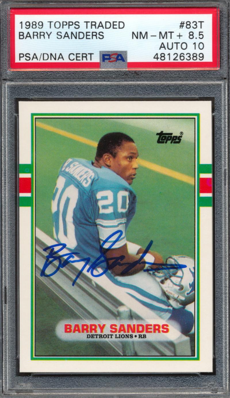 Barry Sanders Signed 1989 Topps Traded #83T (PSA 8.5 | Autograph Graded 10)