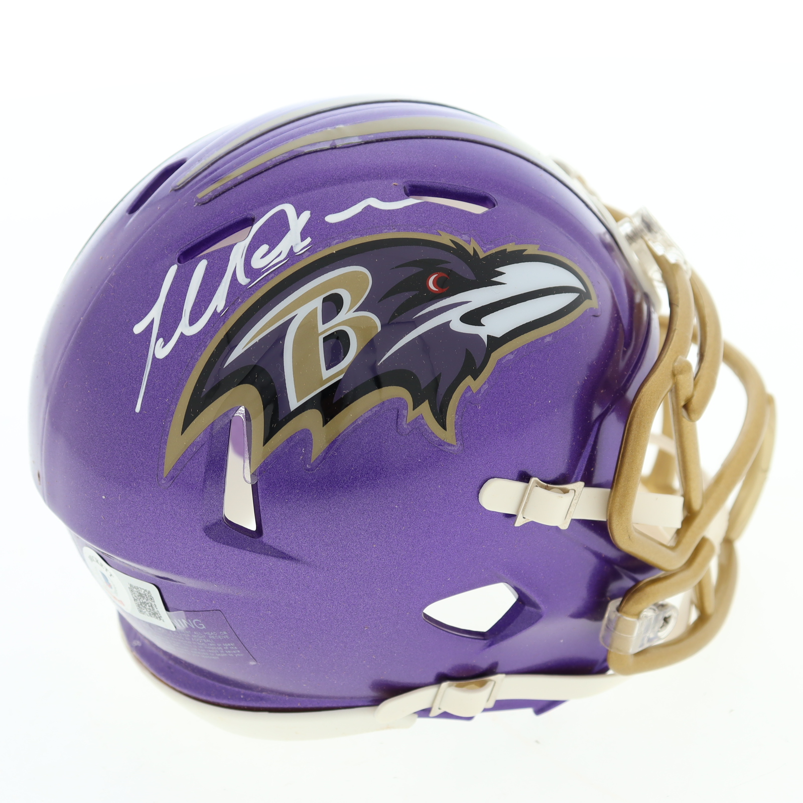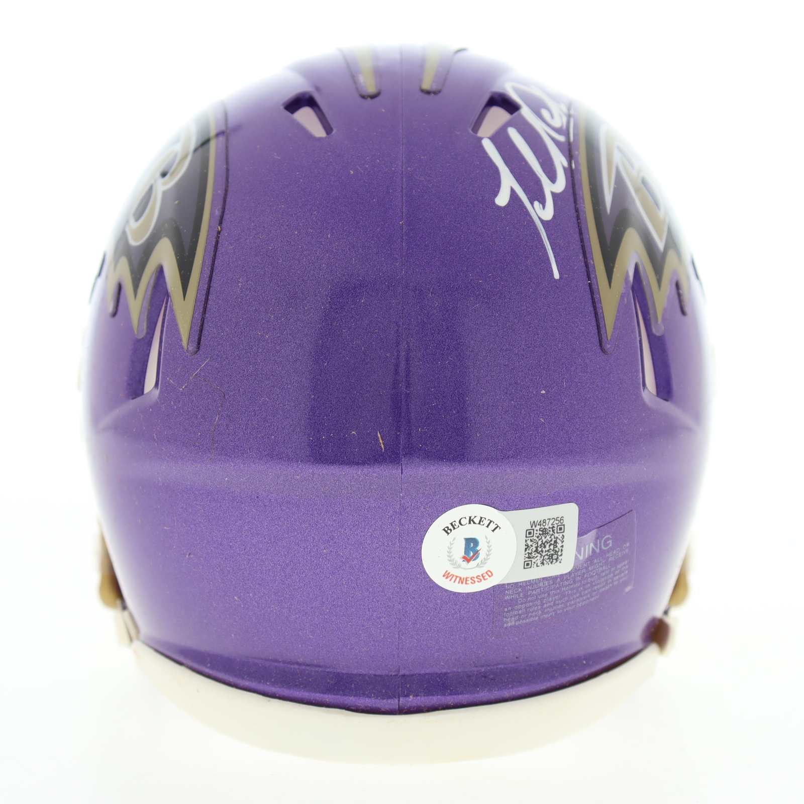 Riddell Baltimore Ravens flash alternate speed mini helmet. Hand-signed by Terrell Suggs.