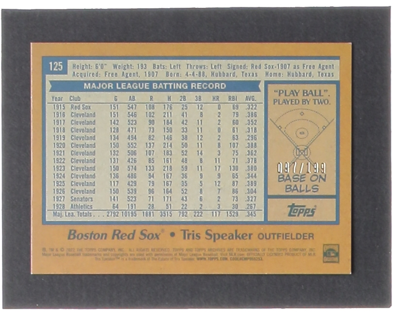 Tris Speaker 2022 Topps Archives Rainbow Foil #125 #097/199