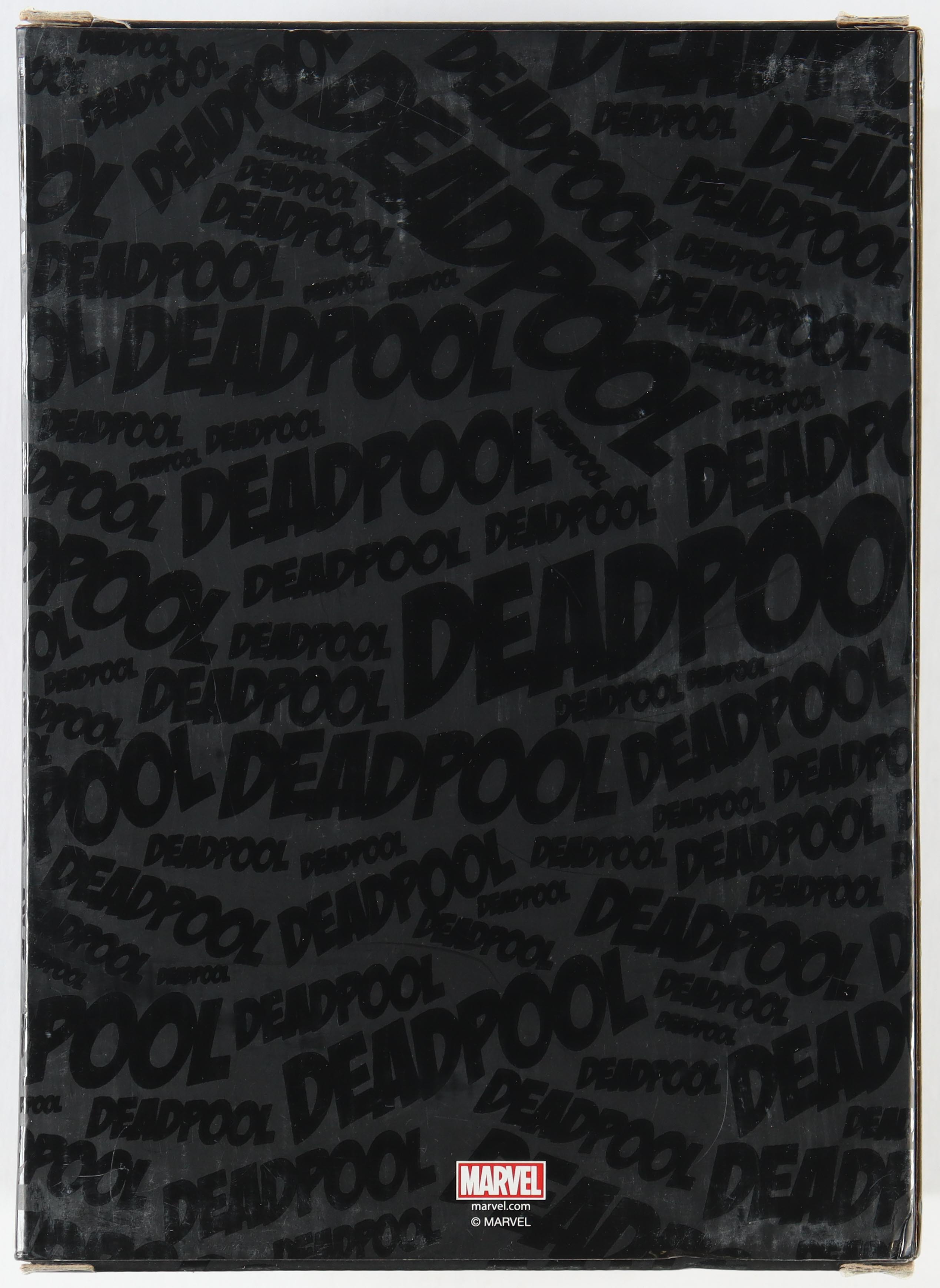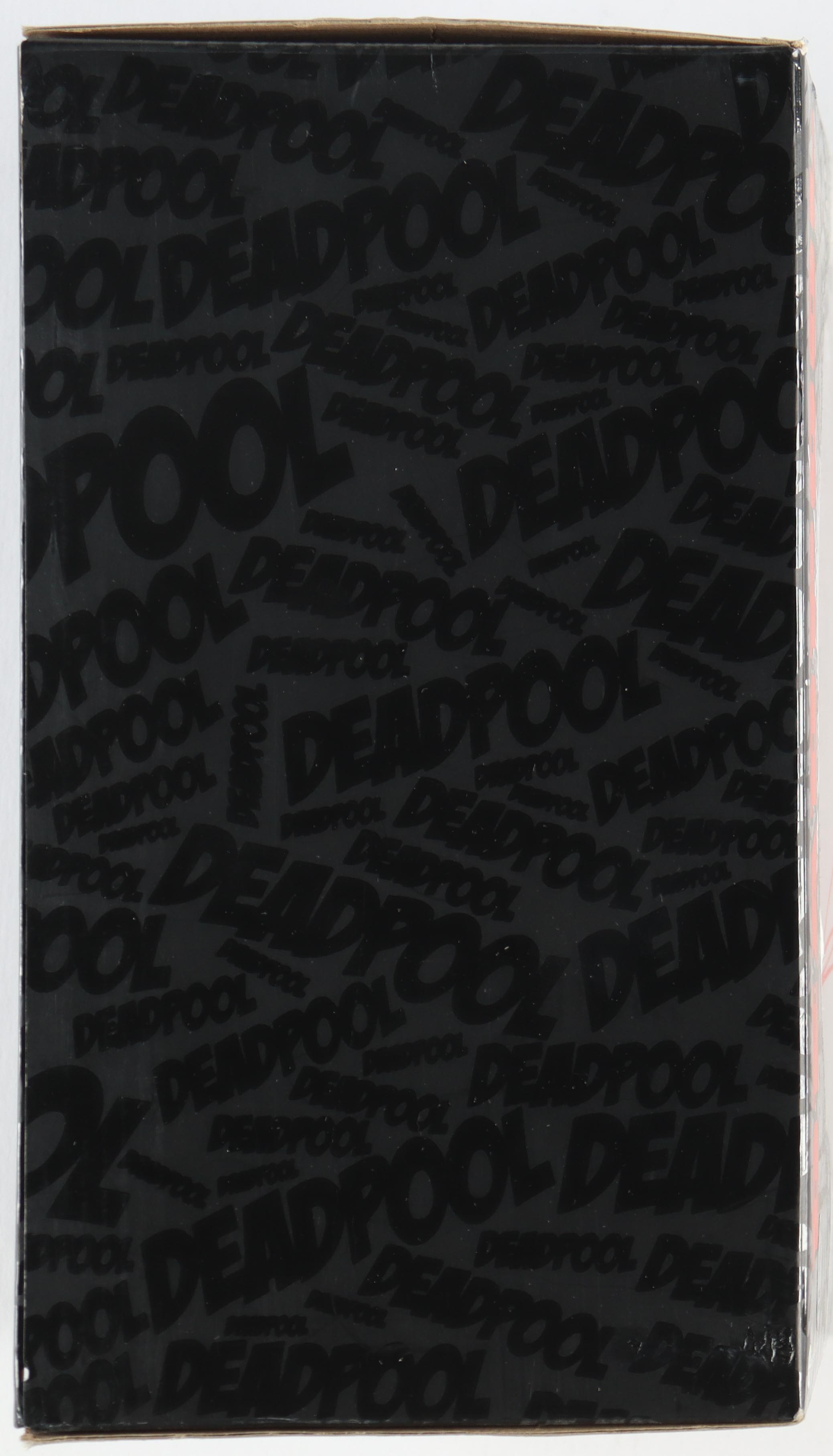 "Deadpool" Vinyl Sugar Super Deluxe Action Figure. Action figure measures approximately 10" tall. Packaging has been hand-signed by Stan Lee and Rob Liefeld (Co-Creator of Deadpool and Cable).