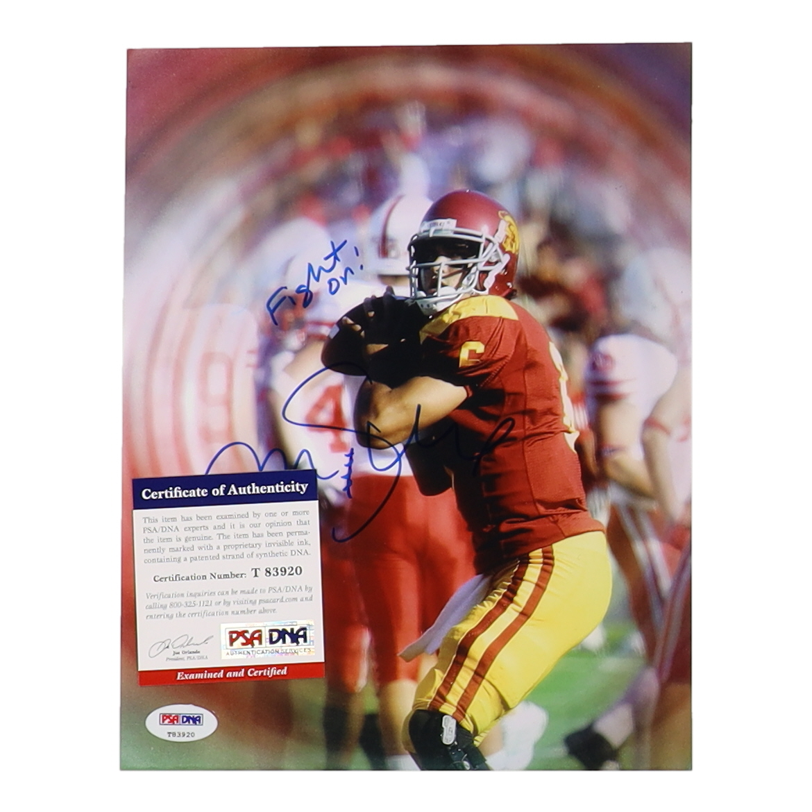 Photo measures 8" x 10" in size and has been hand-signed and inscribed by Mark Sanchez (USC Trojans).