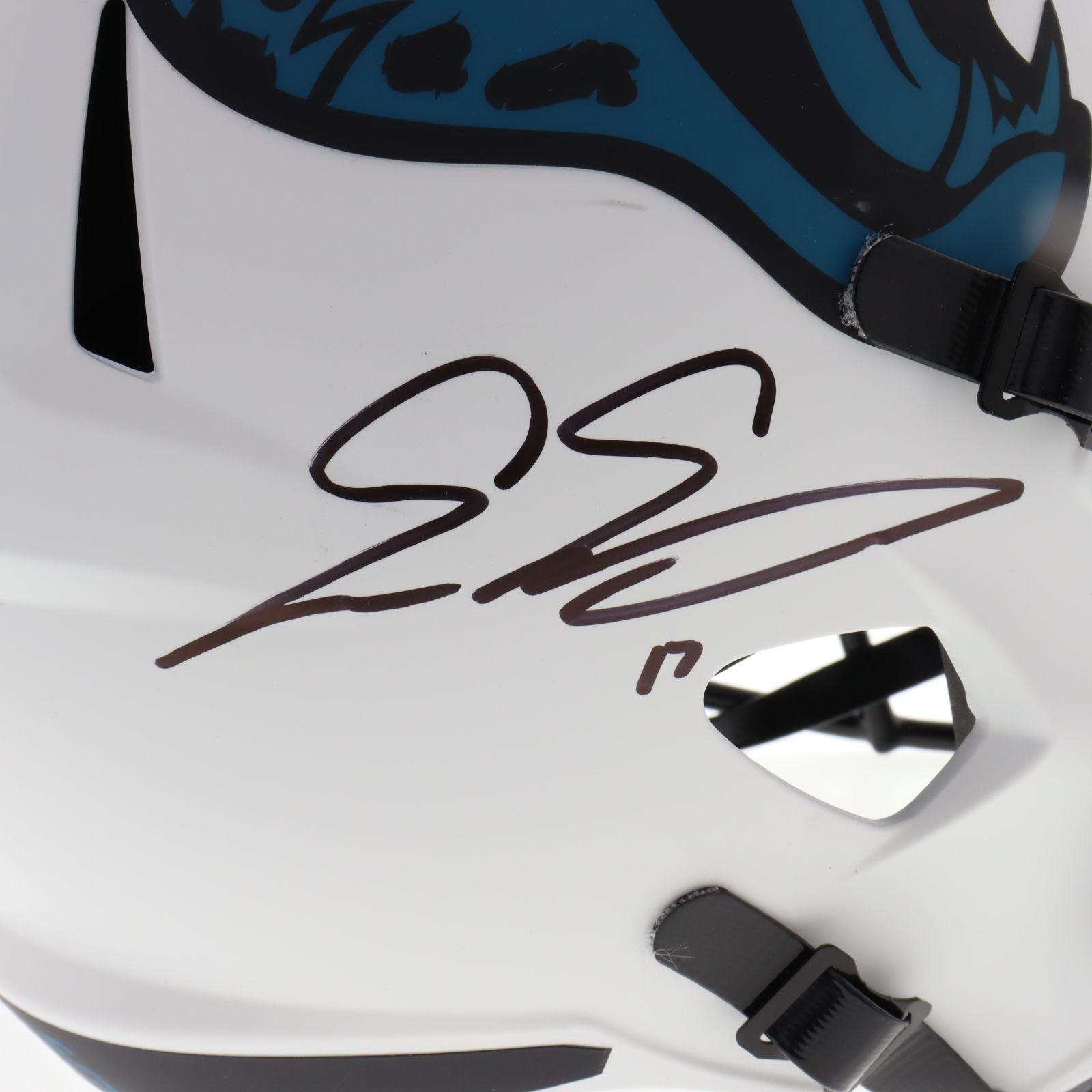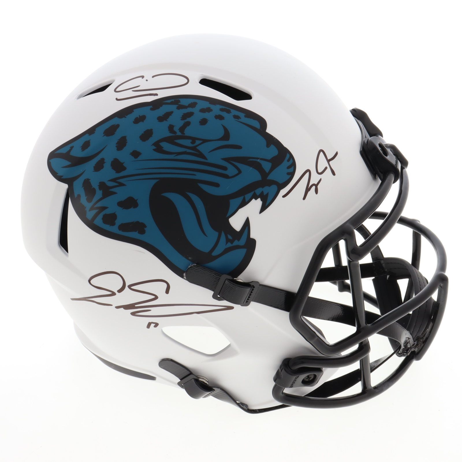 Riddell Jacksonville Jaguars Full-Size Lunar Eclipse Alternate Speed Helmet. Hand-signed by Calvin Ridley, Evan Engram and Zay Jones.