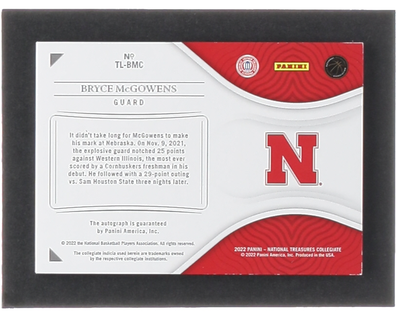 Bryce McGowens 2022-23 Panini National Treasures Collegiate Team Logos #6 #46/49 RC