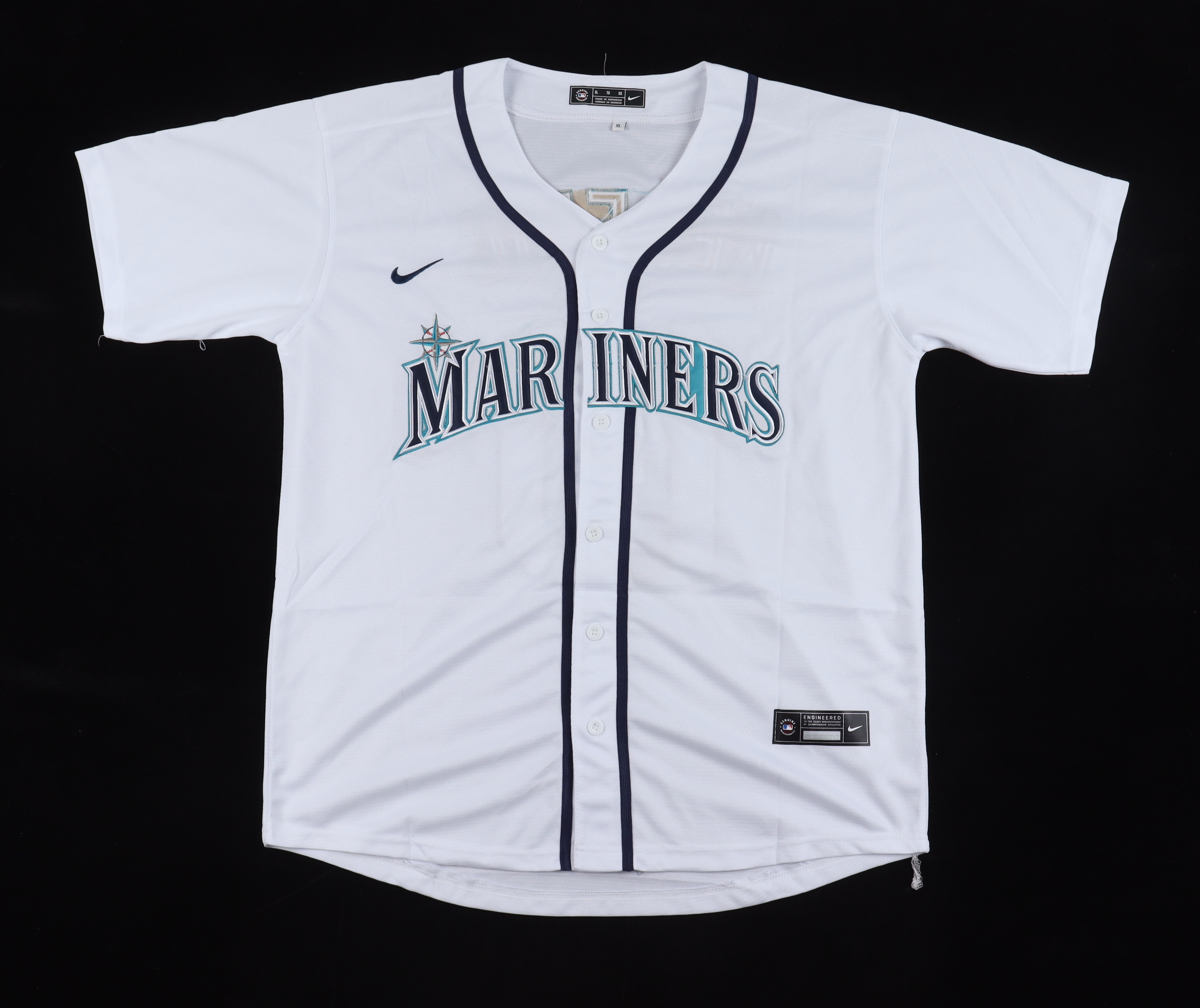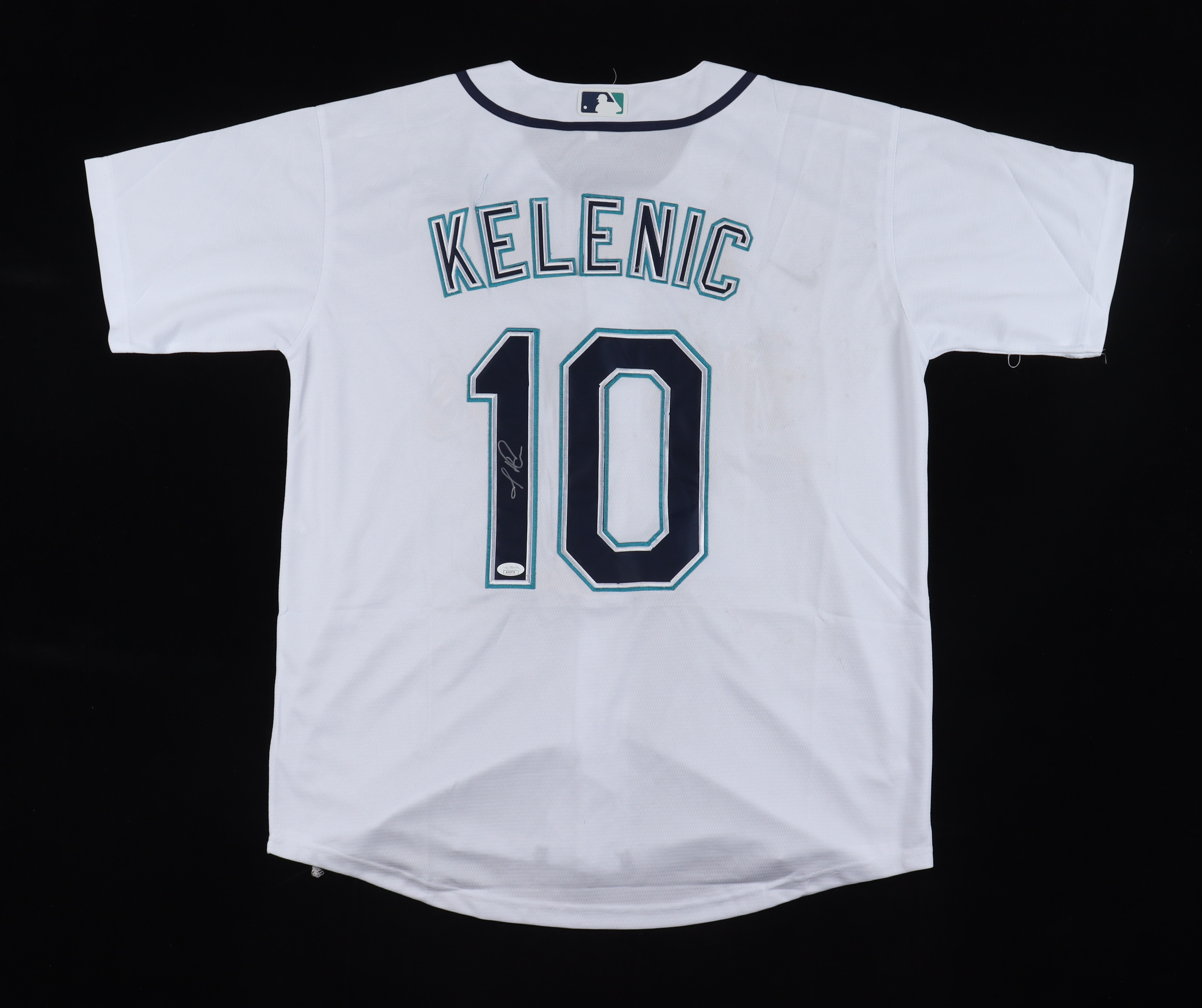 Custom jersey. Everything sewn on, size XL. Hand-signed by Jarred Kelenic. Please note, the back of the jersey is stained.