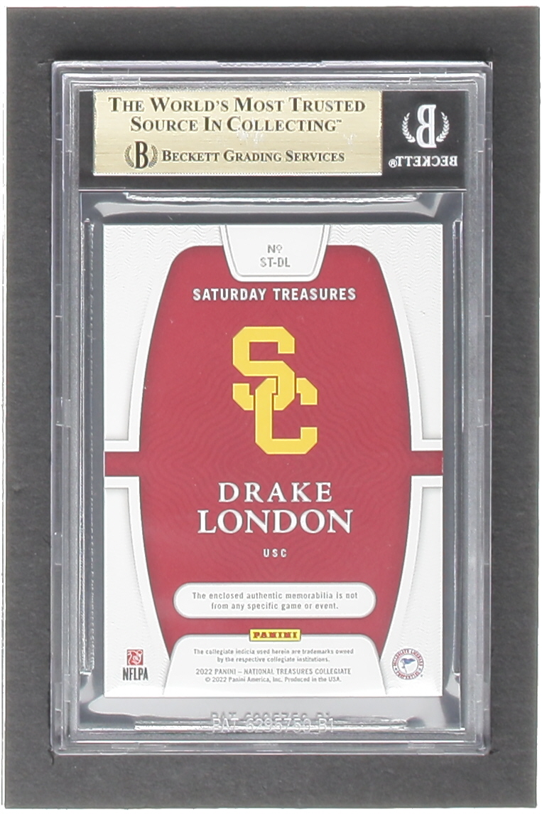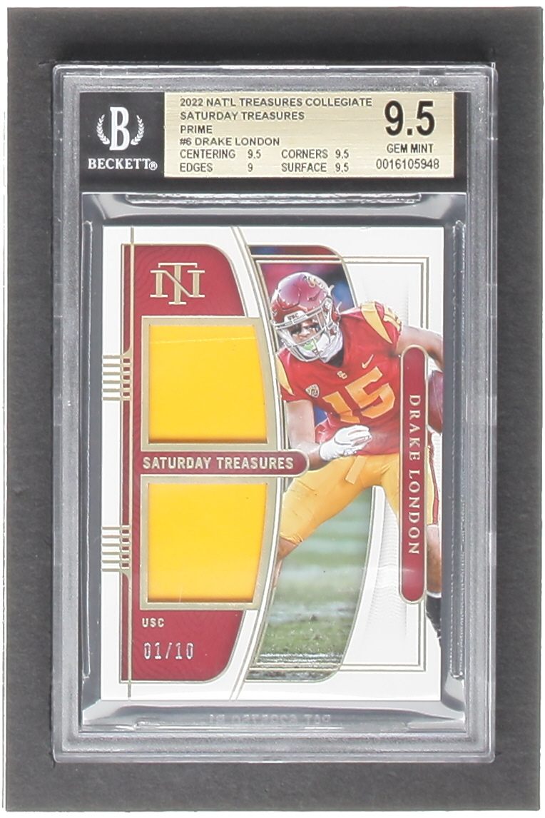 Drake London 2022 Panini National Treasures Collegiate Colossal Materials Prime #6 #01/10 (BGS 9.5)