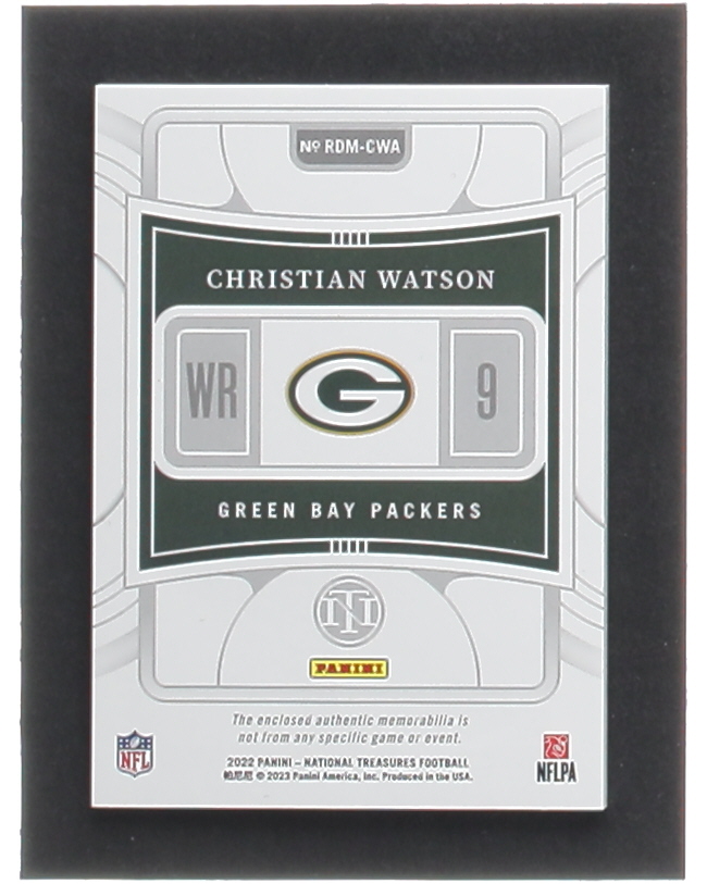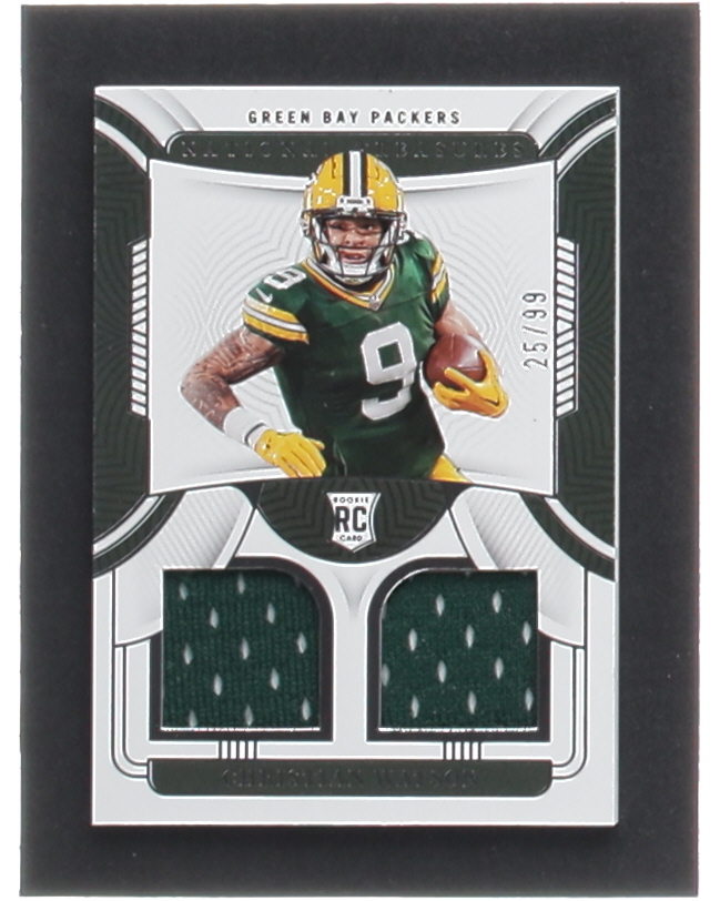 Christian Watson 2022 Panini National Treasures Rookie Dual Materials #12 #25/99 RC
