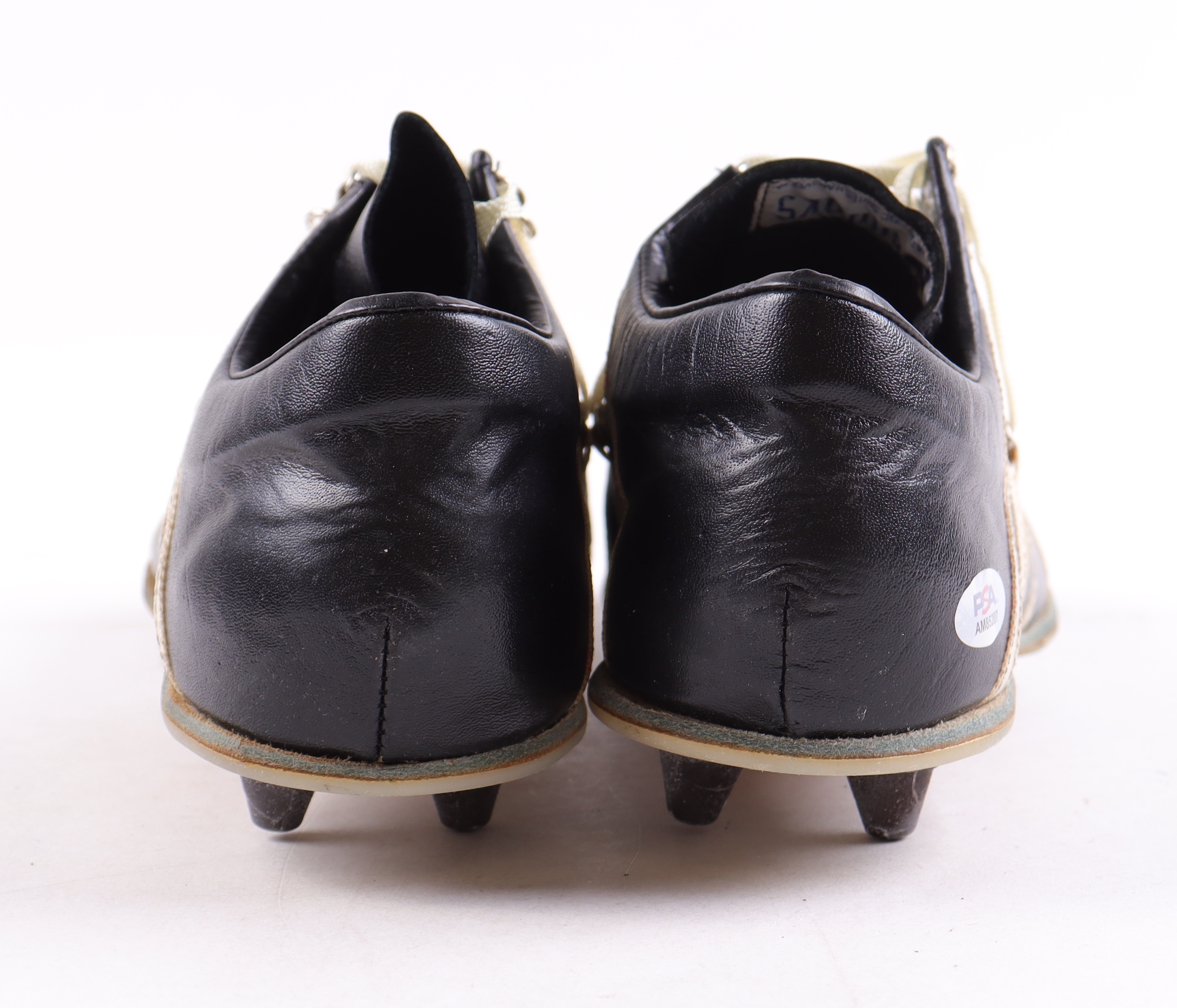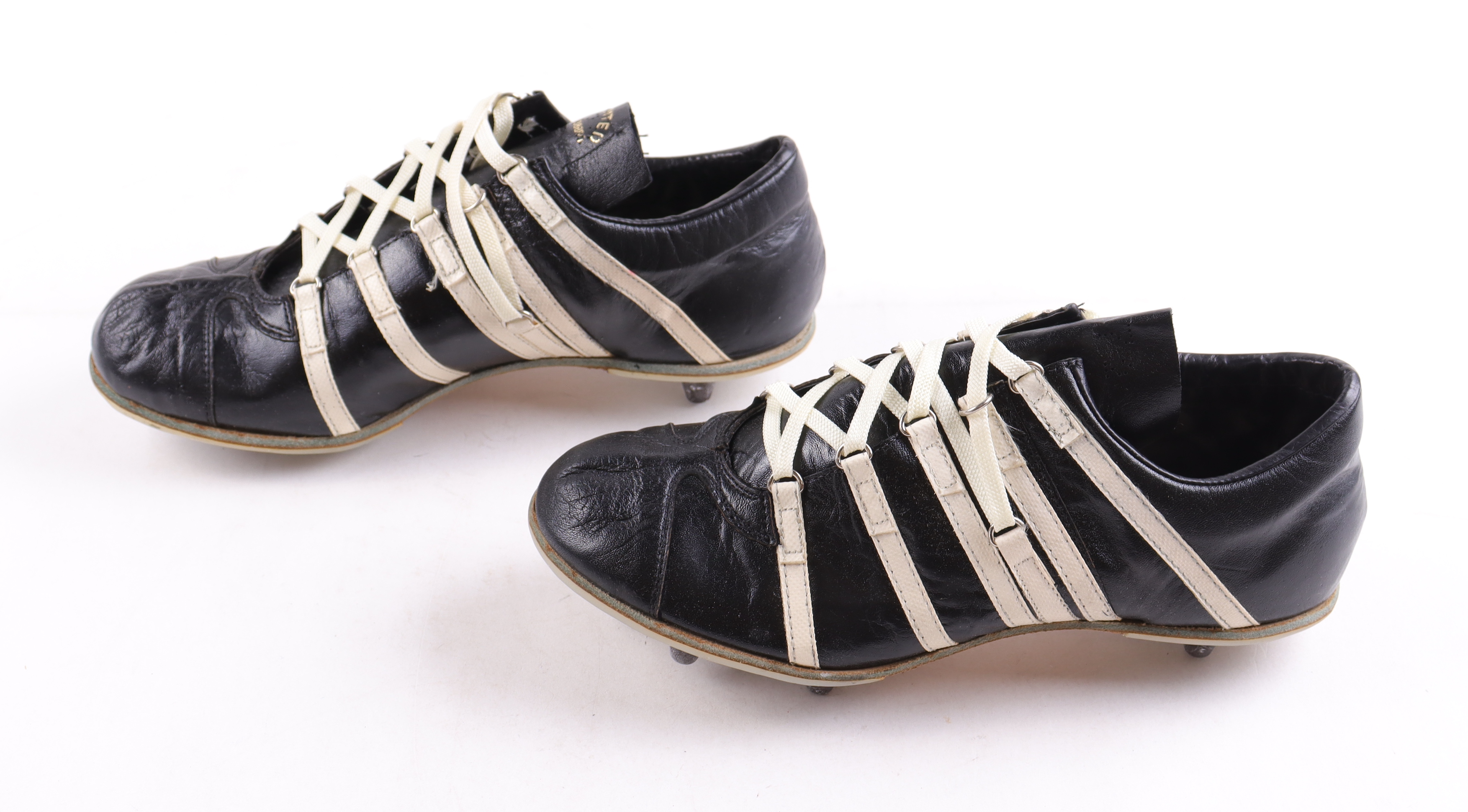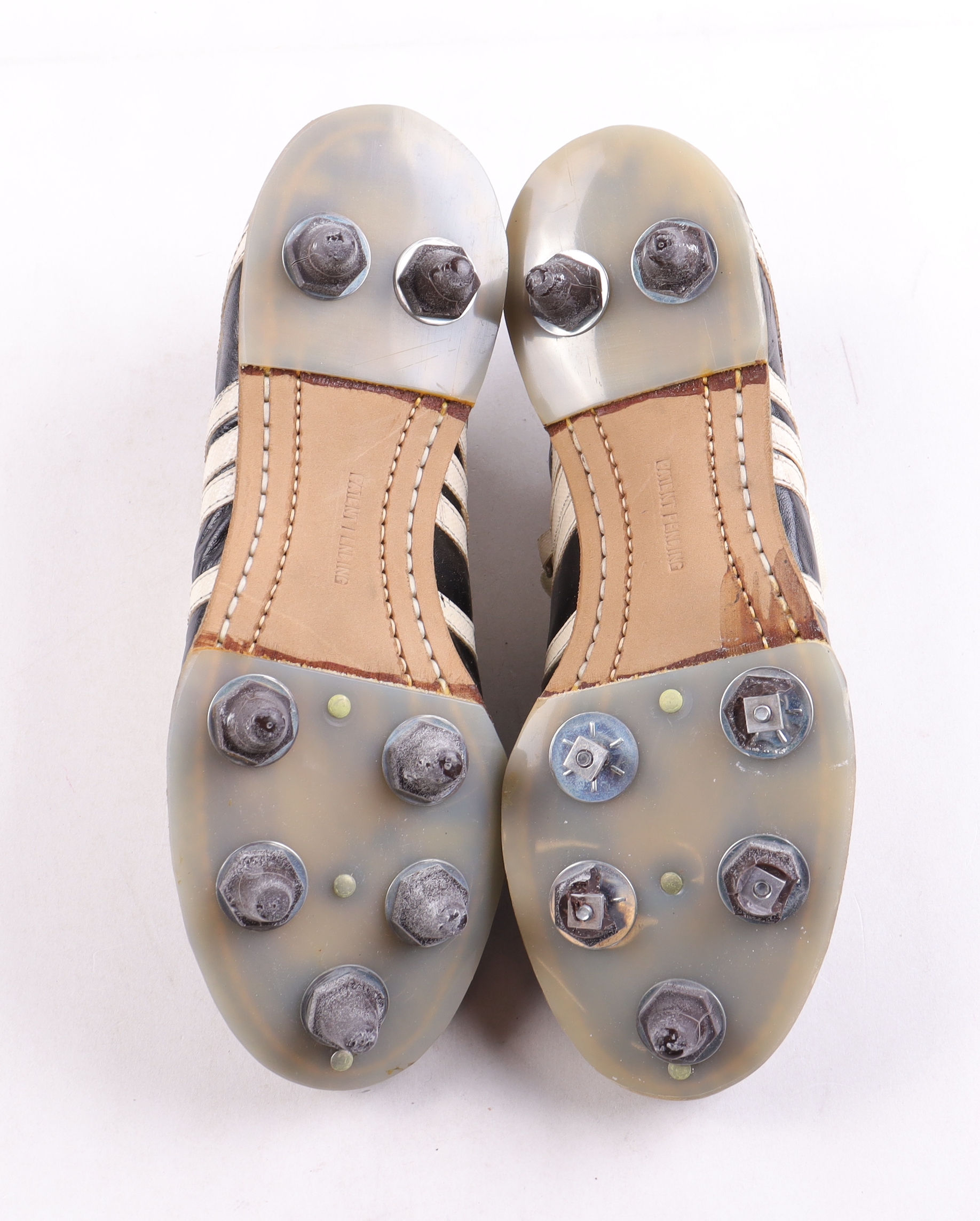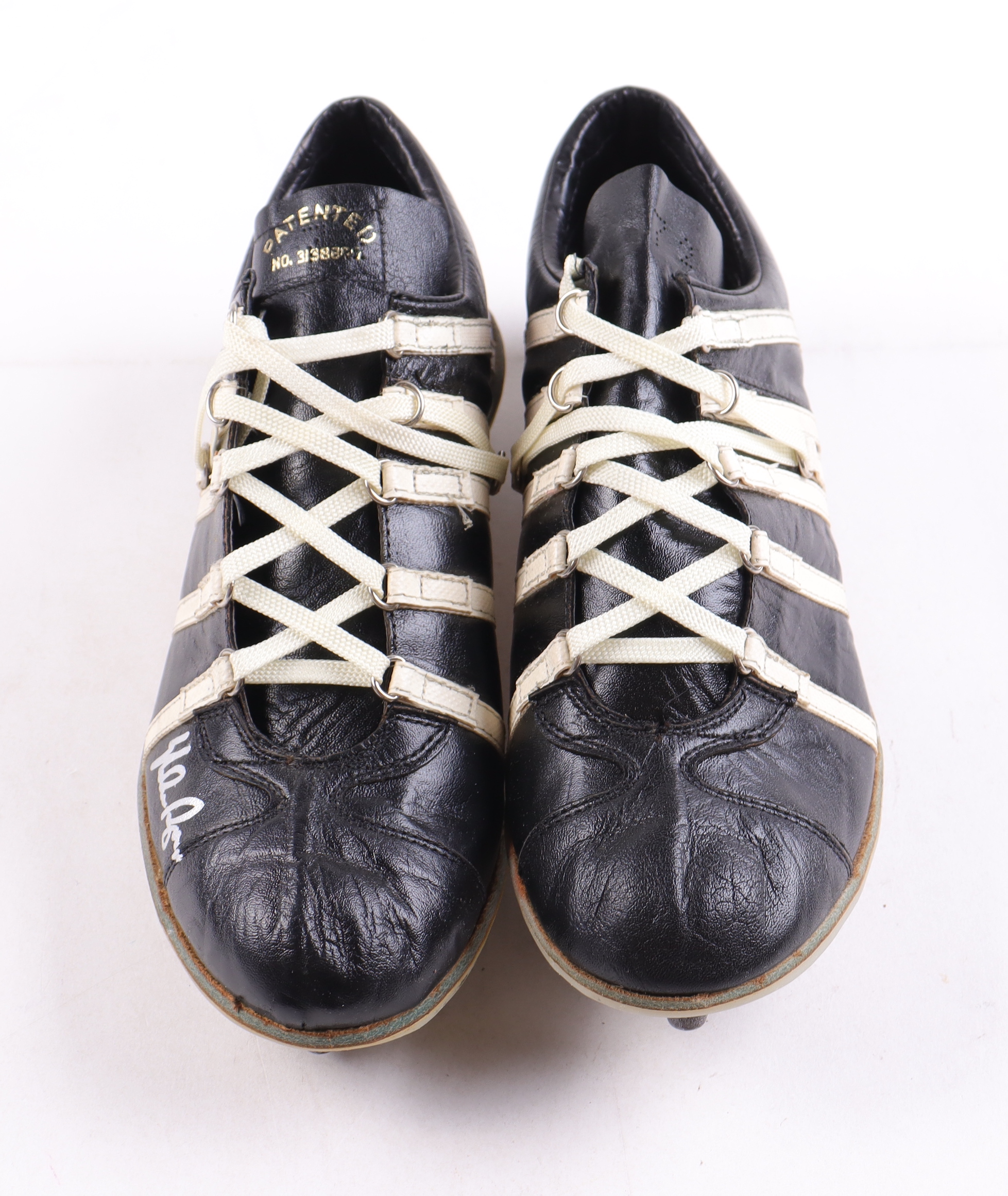 Pair of vintage leather baseball cleats. The right cleat has been hand-signed by Nolan Ryan (Houston Astrps, HOF).