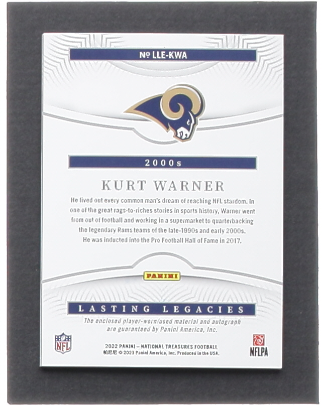 Kurt Warner 2022 Panini National Treasures Lasting Legacies Material Autographs #15 #50/99