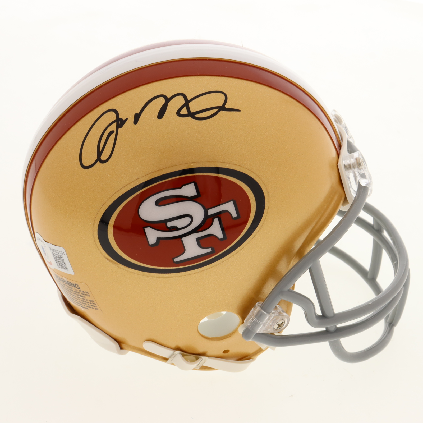 Riddell San Francisco 49ers Mini Helmet. Hand-signed by Joe Montana (HOF).