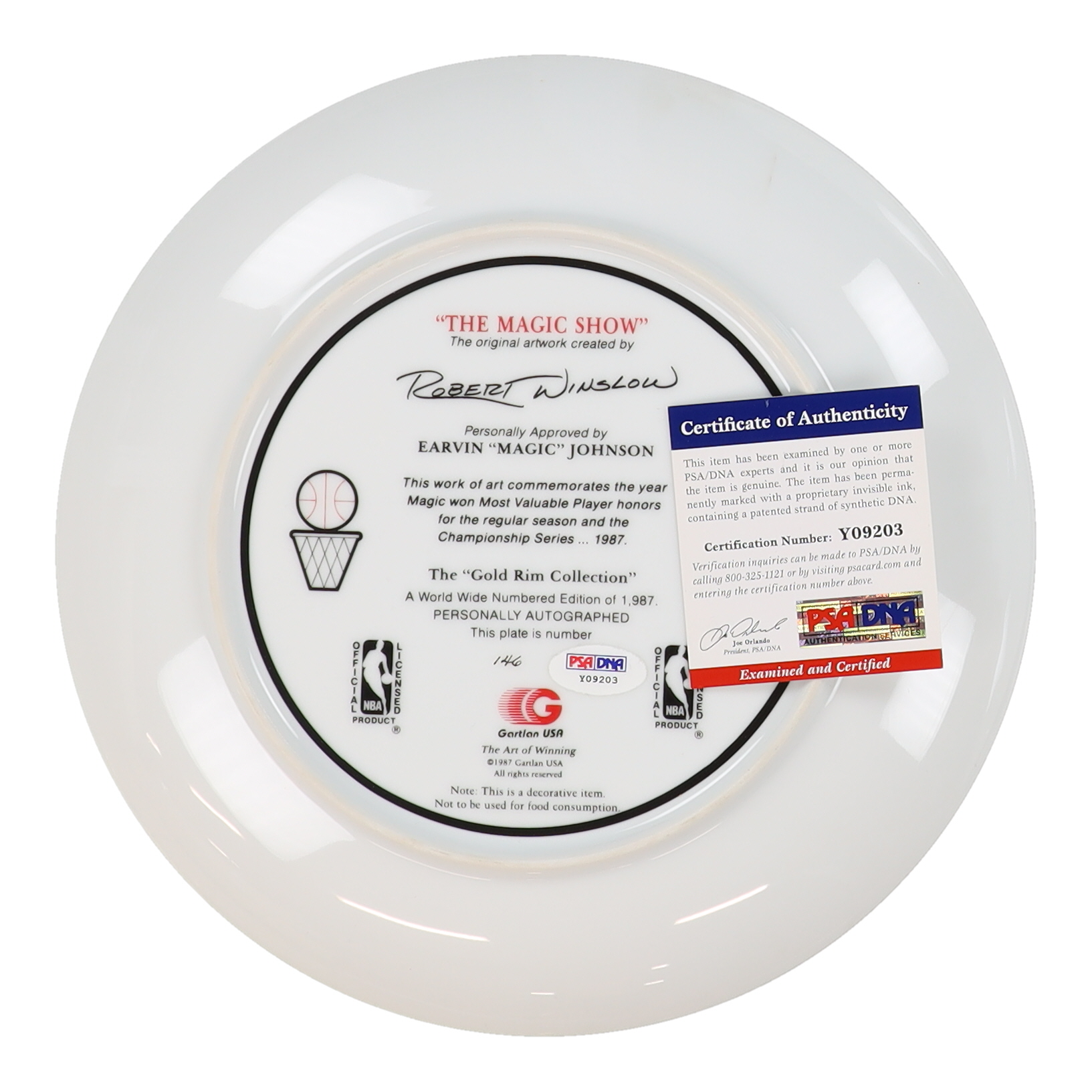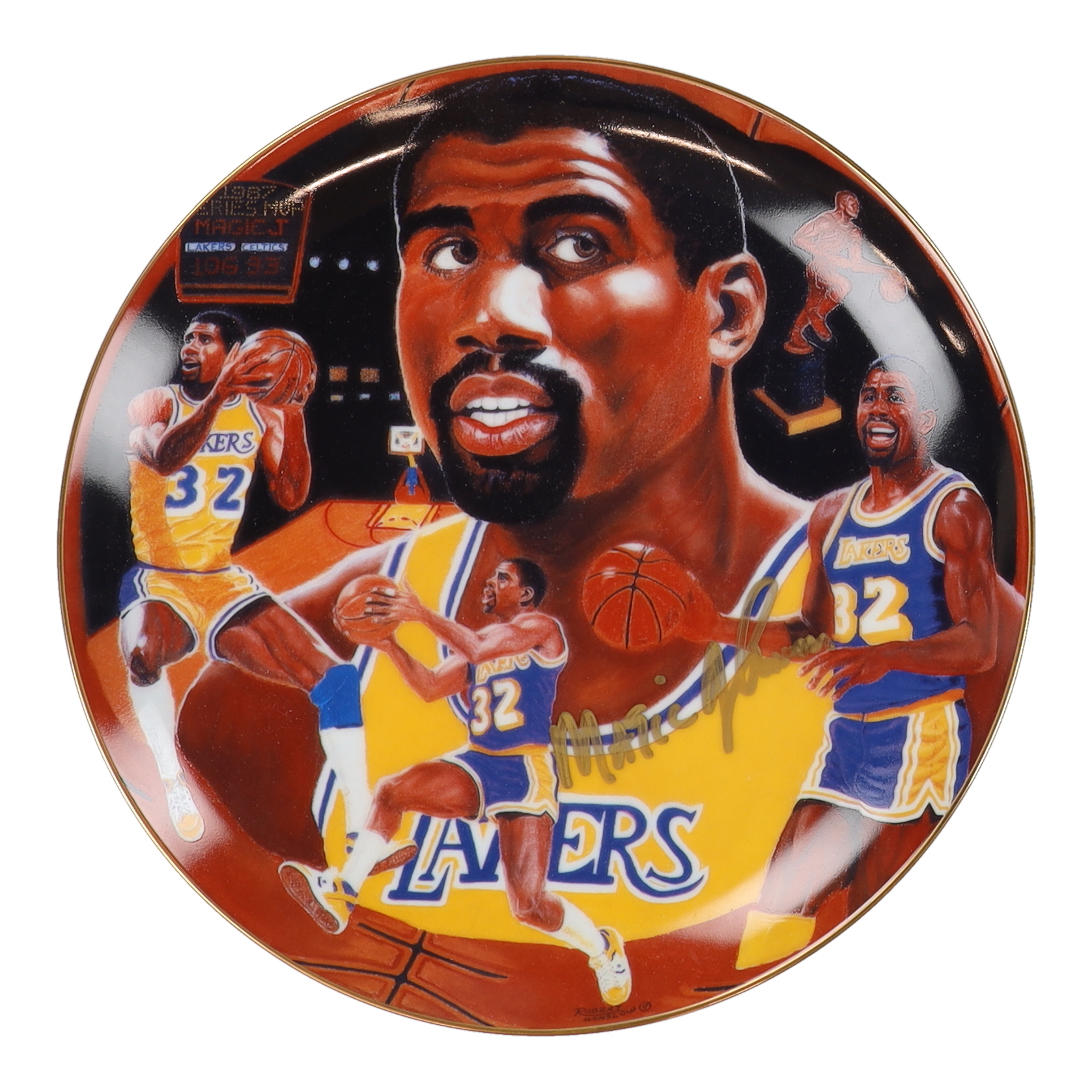 Commemorative art print plate measures approximately 10" in diameter and has been hand-signed by Magic Johnson (Los Angeles Lakers, HOF).