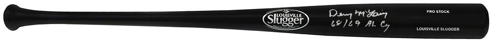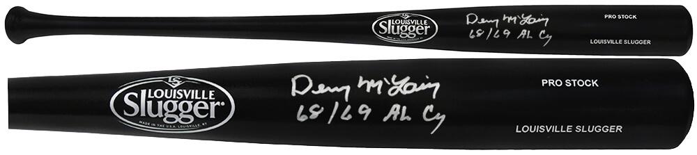 Louisville Slugger Pro Stock black baseball bat has been hand-signed and inscribed by Denny McLain (Detroit Tigers).