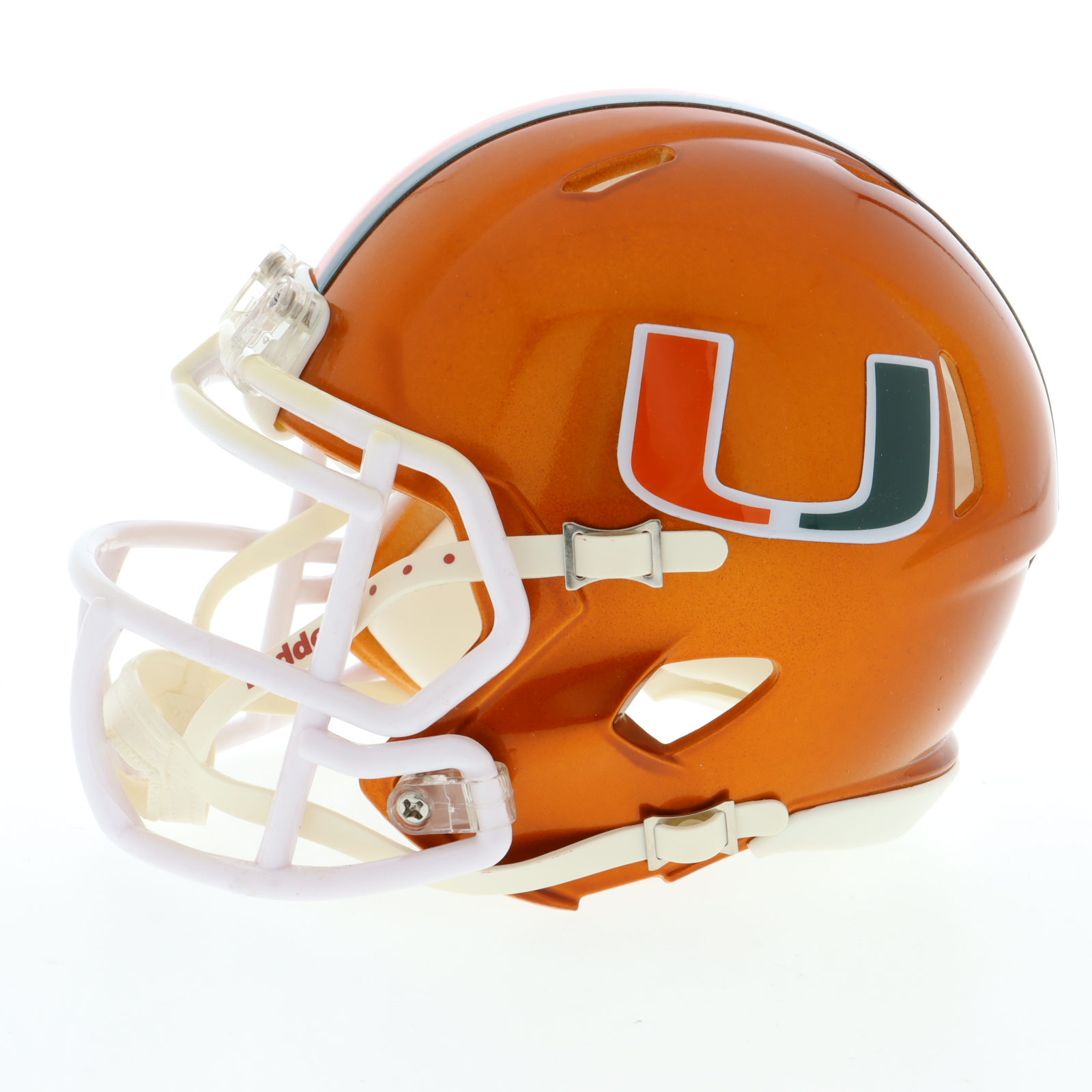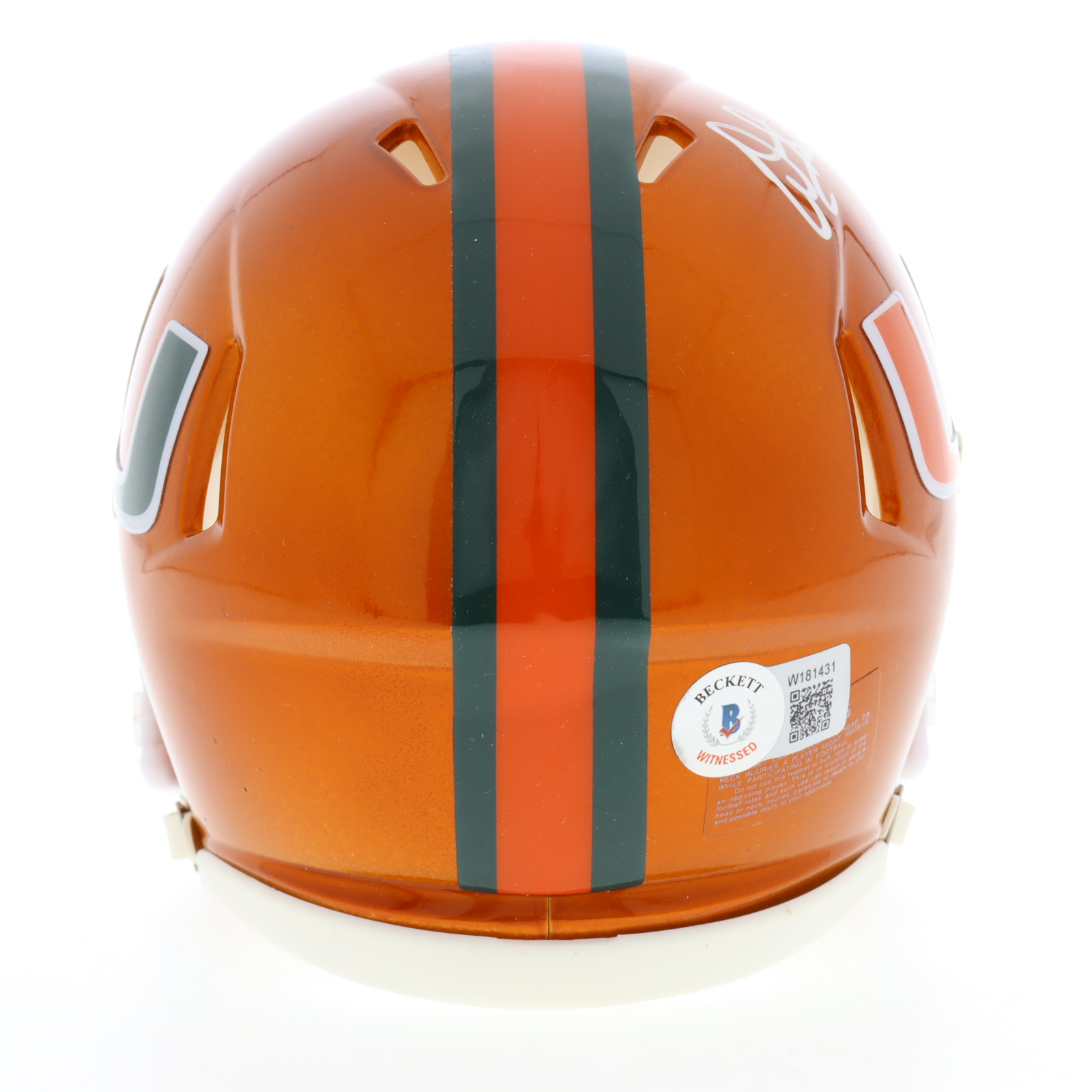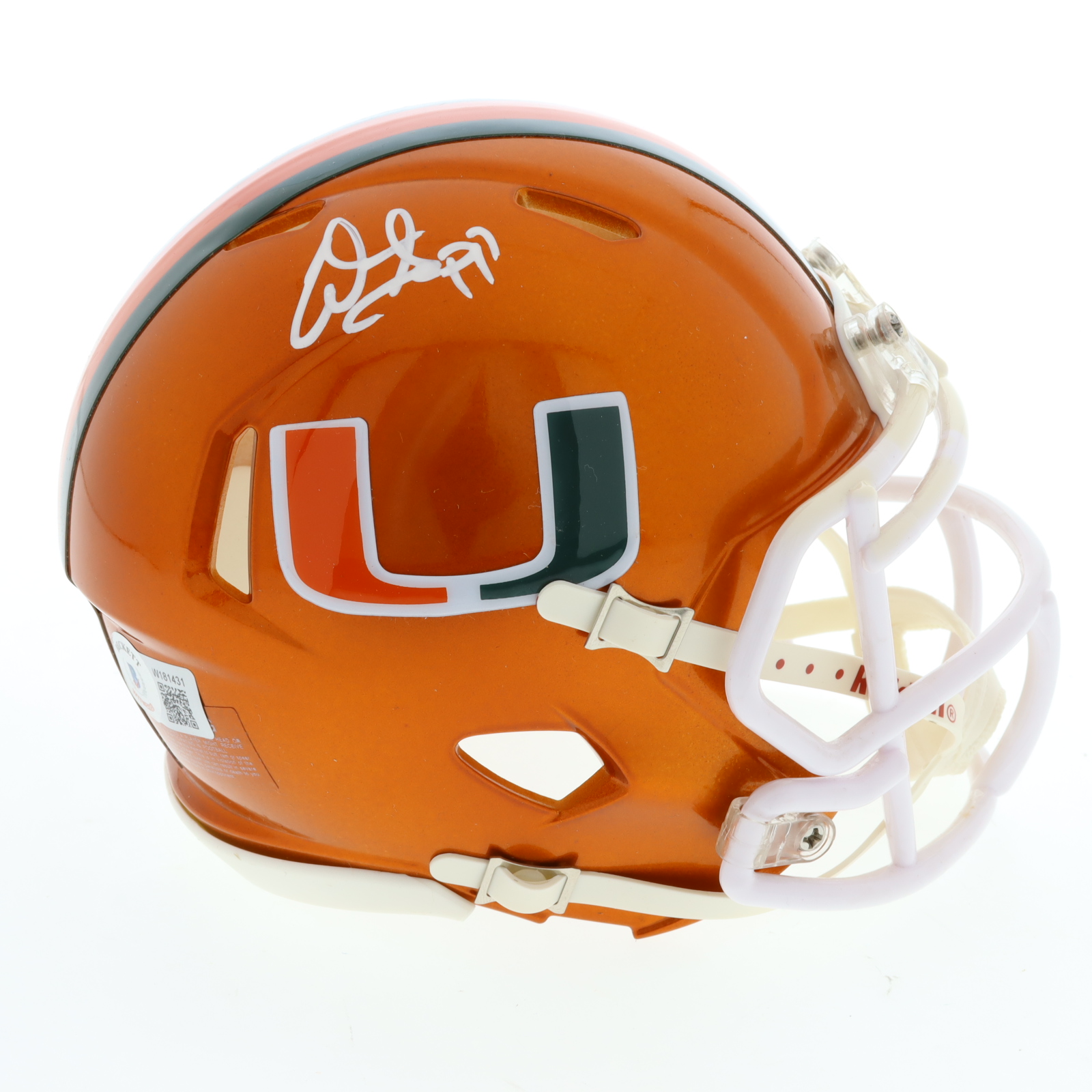 Riddell Miami Hurricanes Flash Alternate Speed mini helmet. Hand-signed by Warren Sapp (HOF).