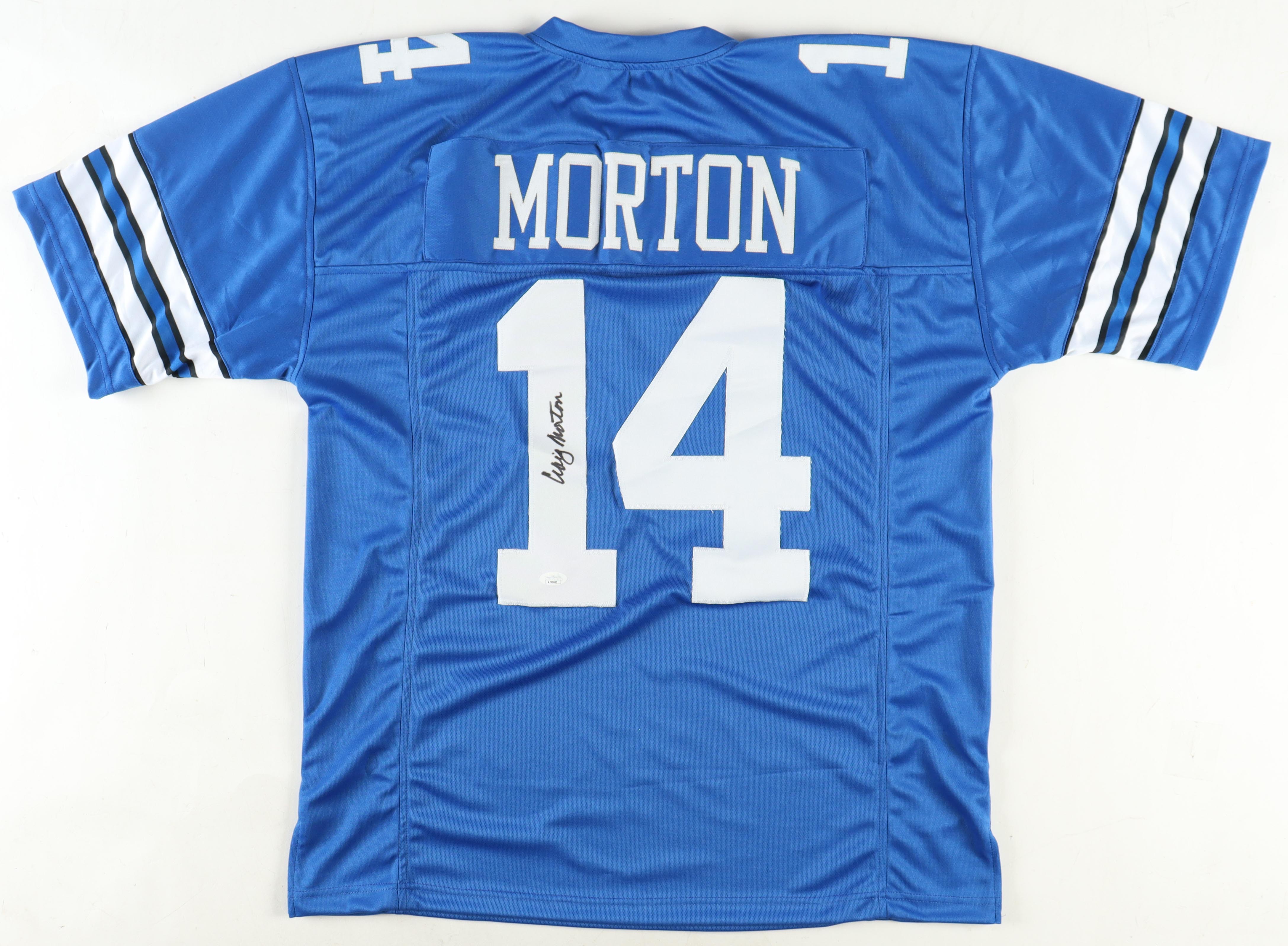 Custom jersey with everything sewn on, size XL. Hand-signed by Craig Morton.