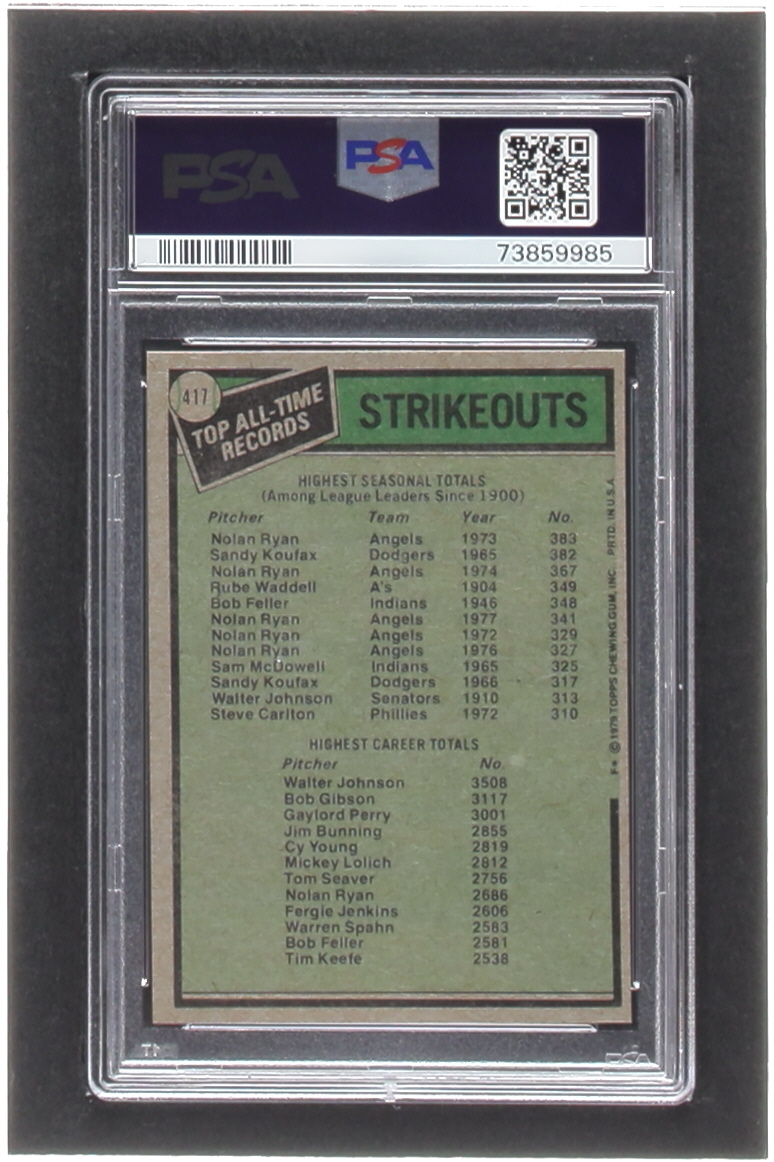 Nolan Ryan | Walter Johnson 1979 Topps #417 ATL DP (PSA 8)
