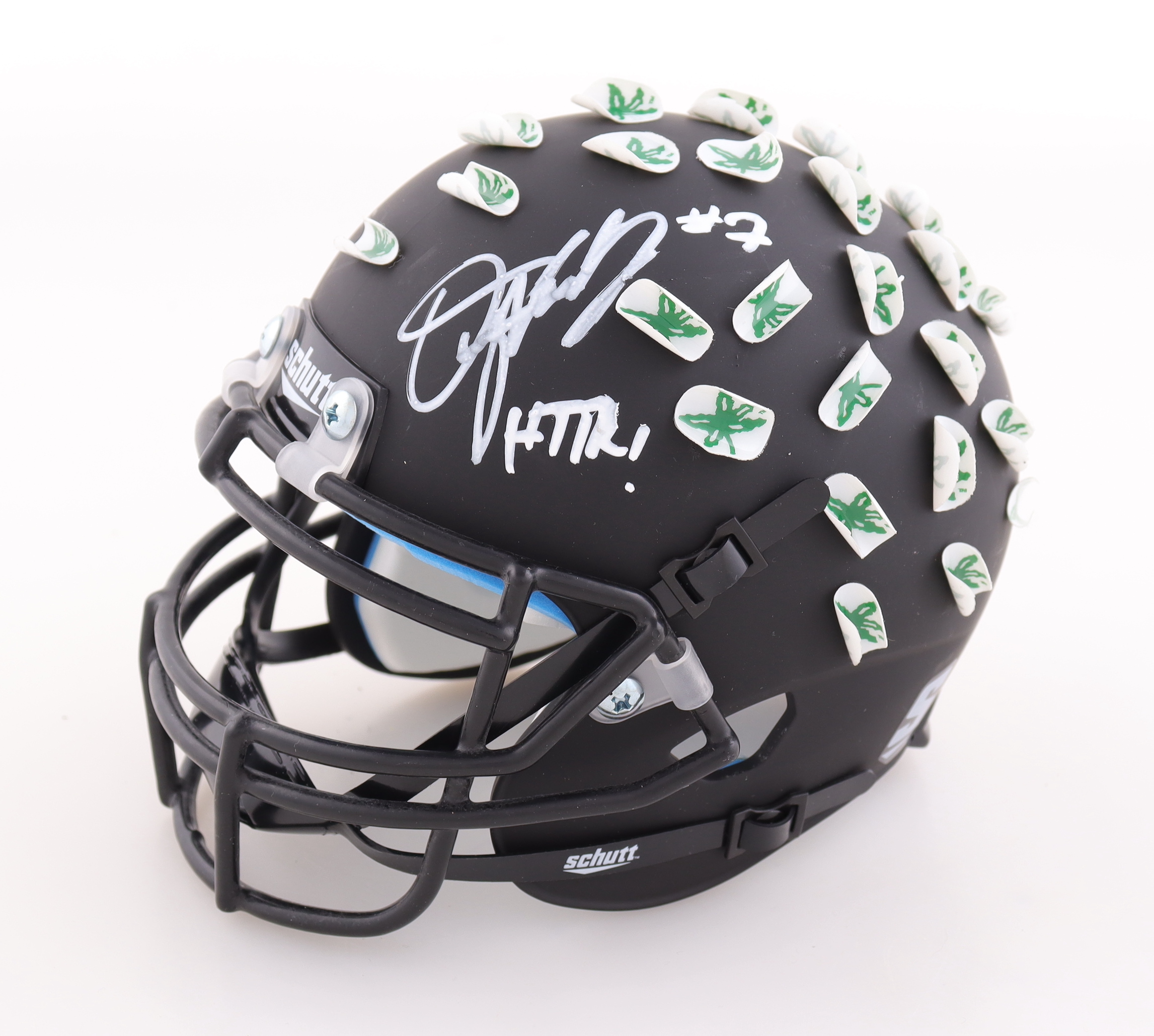 Schutt Ohio State Buckeyes mini helmet. Hand-signed and inscribed by Dwayne Haskins (D. 2022). Please note, stickers on helmet are peeling.