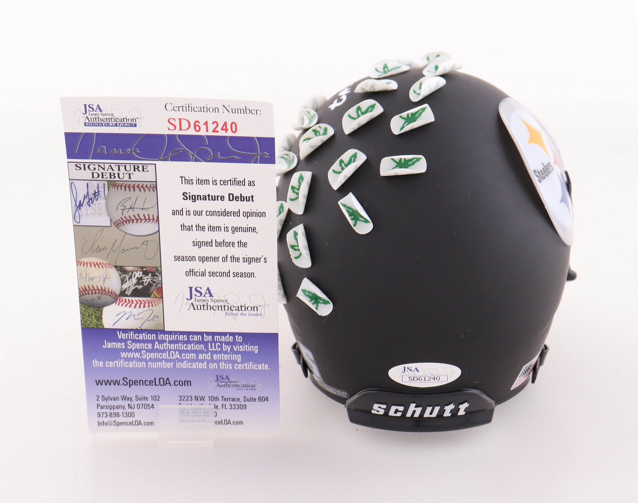 The autograph(s) includes an official James Spence Authentication (JSA) "Signature Debut" hologram and COA. "Signature Debut" is the autographed memorabilia equivalent to a rookie card. The JSA definition of a "Signature Debut" is as follows: "Any item that is autographed and received by JSA prior to the last game of the signer's official rookie season.