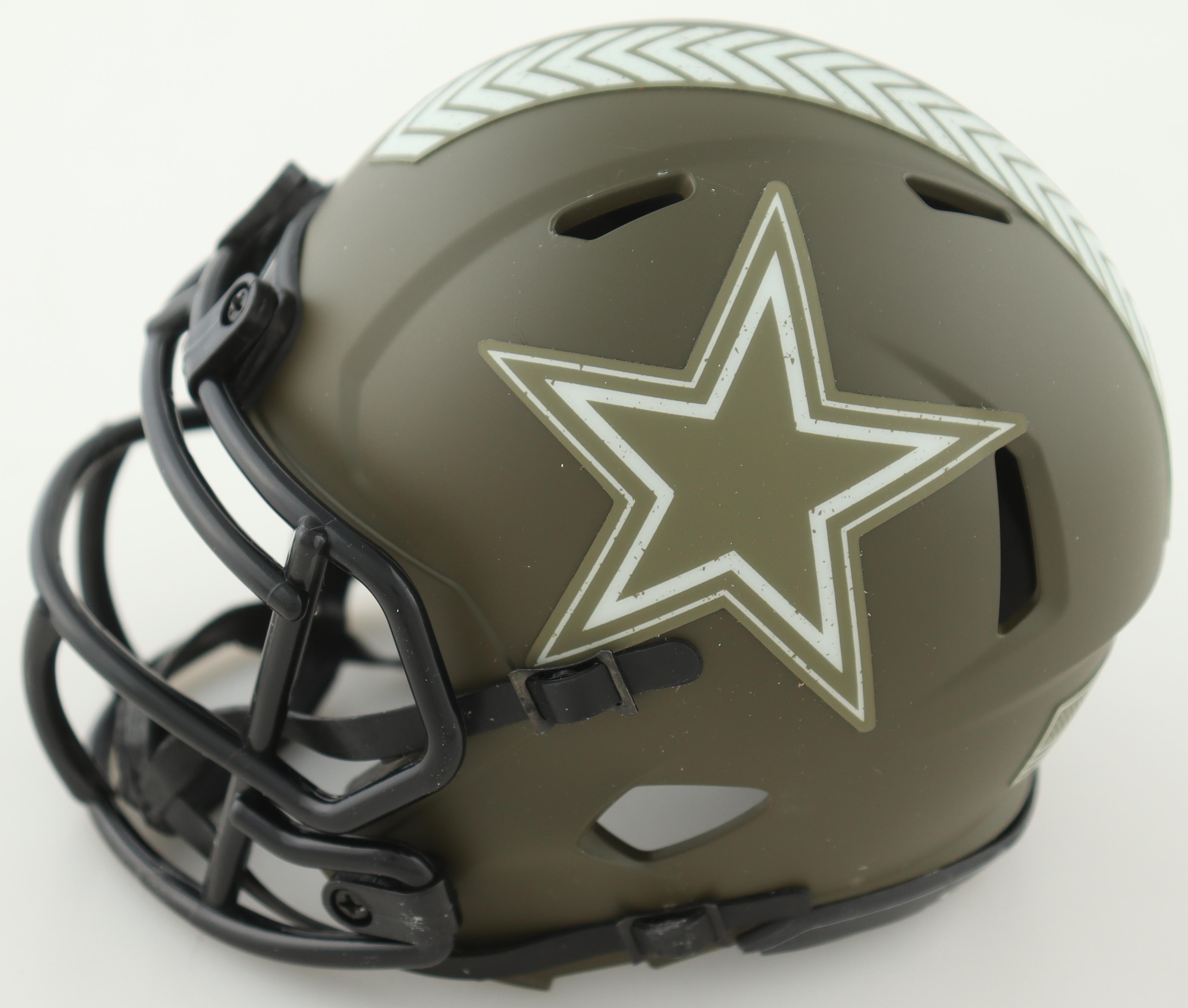 Riddell Dallas Cowboys Salute To Service Alternate Speed mini helmet. Hand-signed by Dorance Armstrong Jr.
