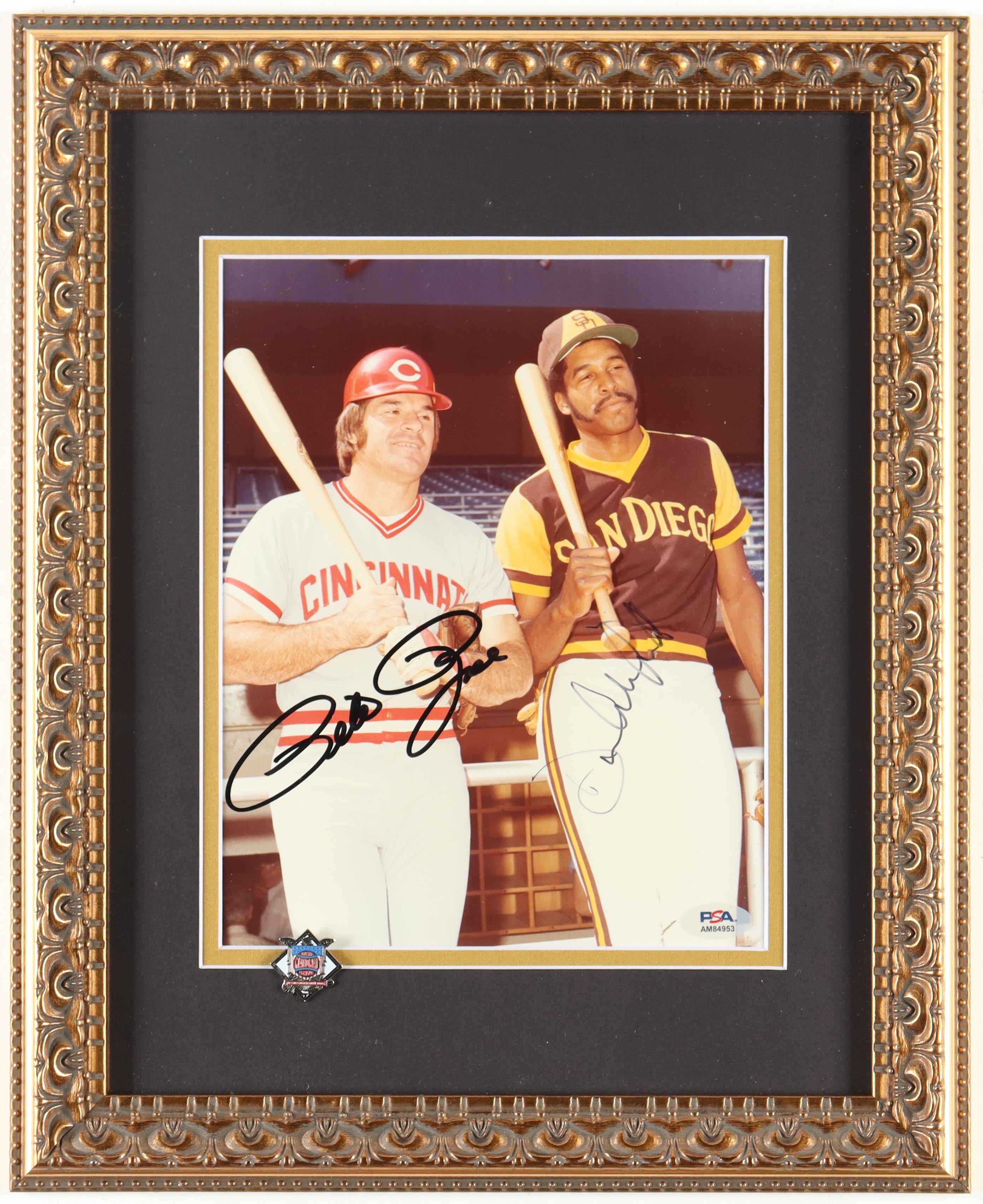 Pete Rose & Dave Winfield Signed 13x16 Custom Framed Photo Display with Pewter National League Pin (PSA)