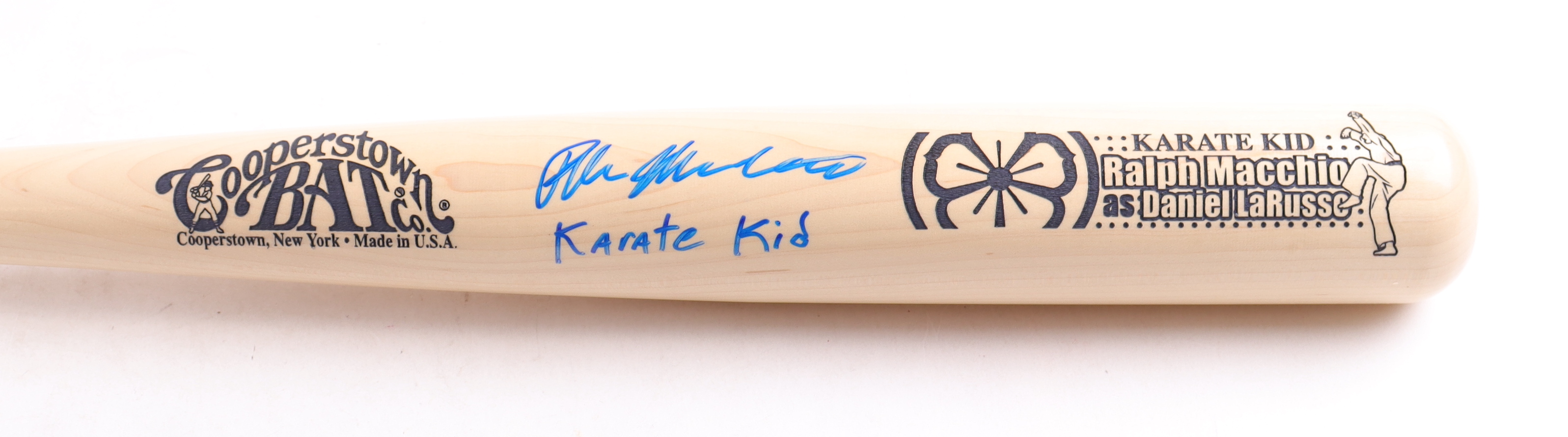 Cooperstown "Karate Kid" baseball bat. Hand-signed and inscribed by Ralph Macchio (Daniel LaRusso).