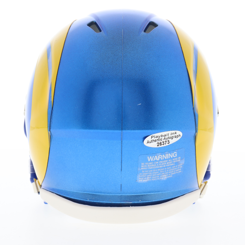 Riddell Los Angeles Rams Flash Alternate Speed mini helmet. Hand-signed and inscribed by Ben Skowronek.