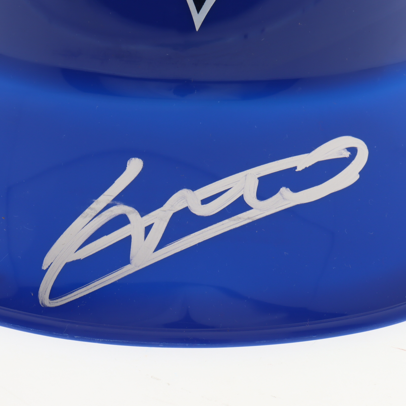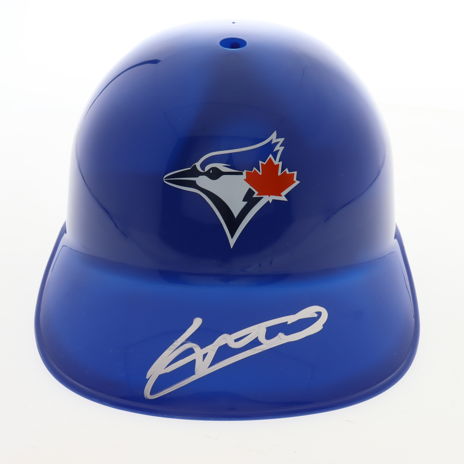 Toronto Blue Jays full-size replica souvenir batting helmet. Hand-signed by Vladimir Guerrero Jr. Please note, there is scuffing on the helmet.
