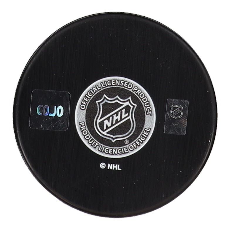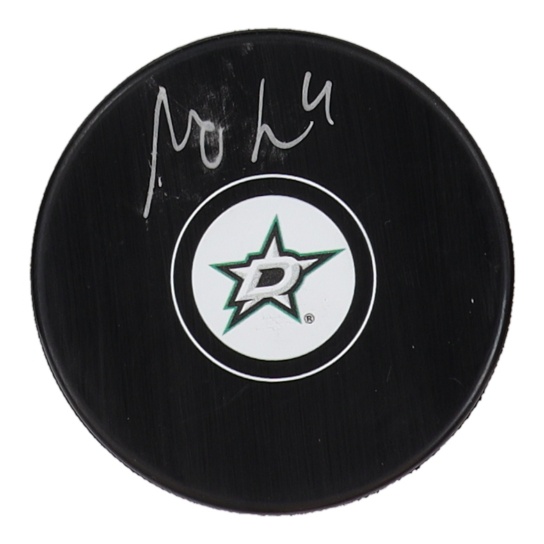 Dallas Stars logo hockey puck. Hand-signed by Miro Heiskanen (Dallas Stars).