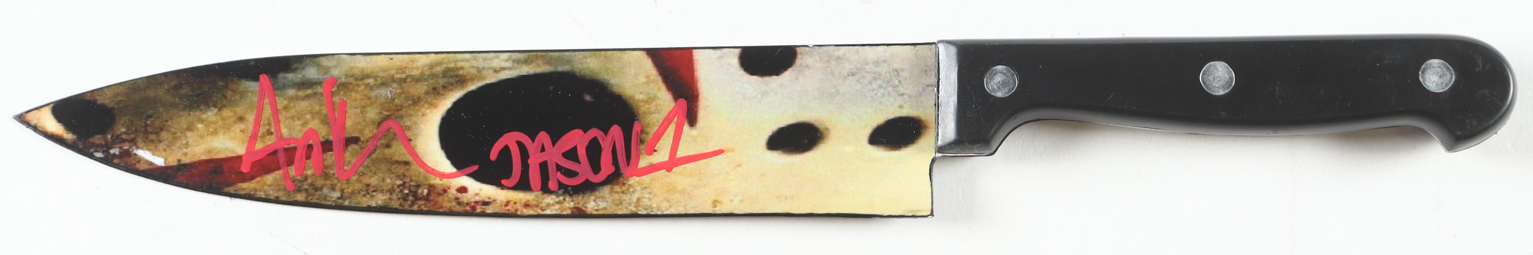 Kitchen knife measures approximately 12" in length. Hand-signed and inscribed by Ari Lehman (Jason Voorhees). Please note, parts of the decal are damaged.