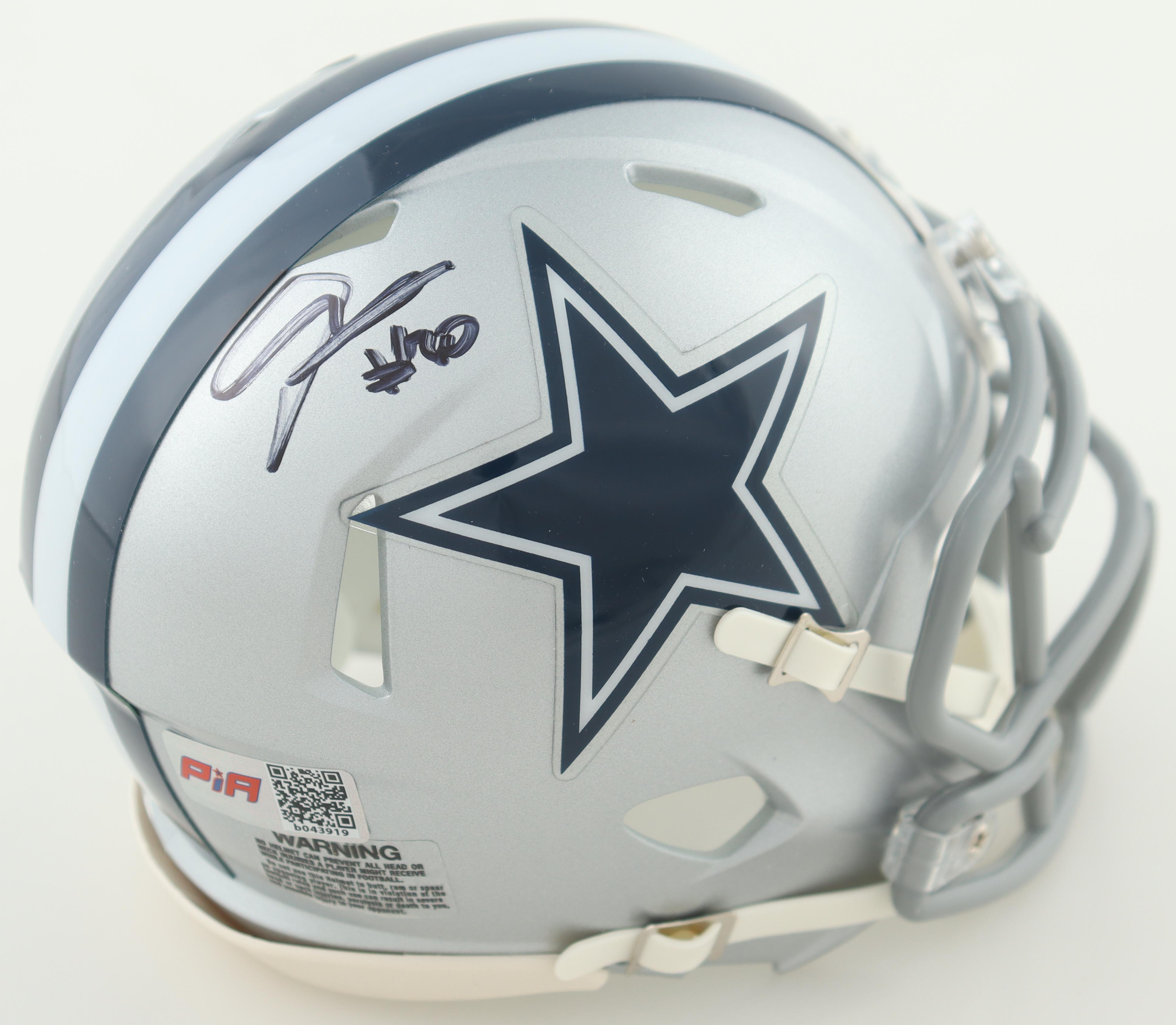 Riddell Dallas Cowboys speed mini helmet. Hand-signed by Juanyeh Thomas.