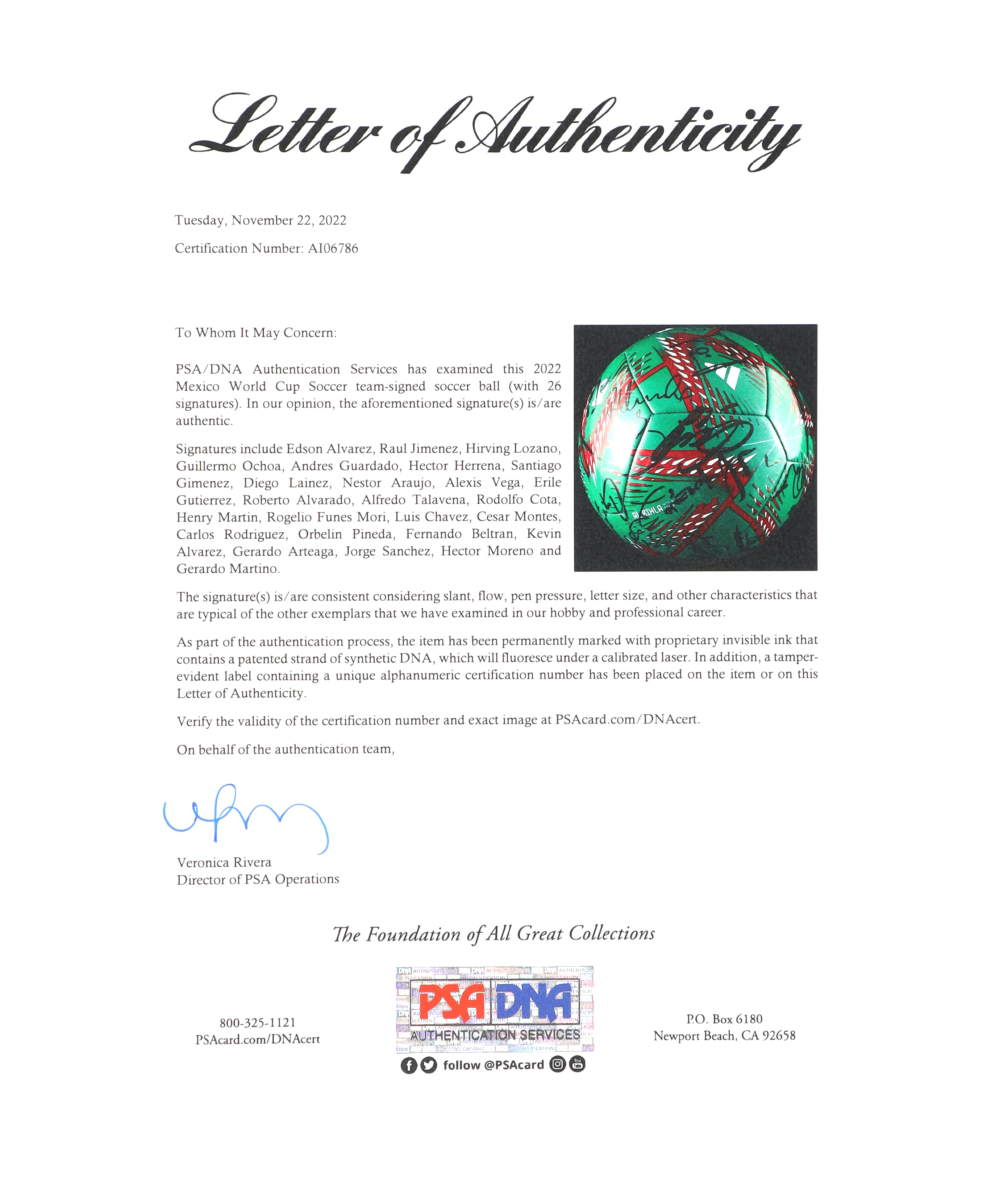 2022 Mexico World Cup Soccer Ball Signed by (26) with Roberto Alvarado, Edson Álvarez, Kevin Álvarez, Néstor Araujo (PSA)